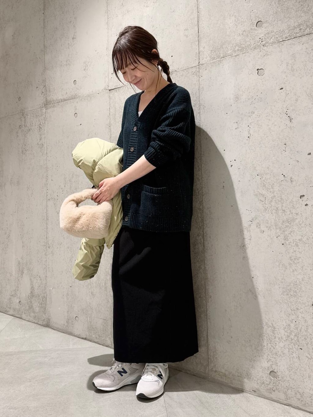 カーディガンは、メンズのサイズでゆったりと着てみました。