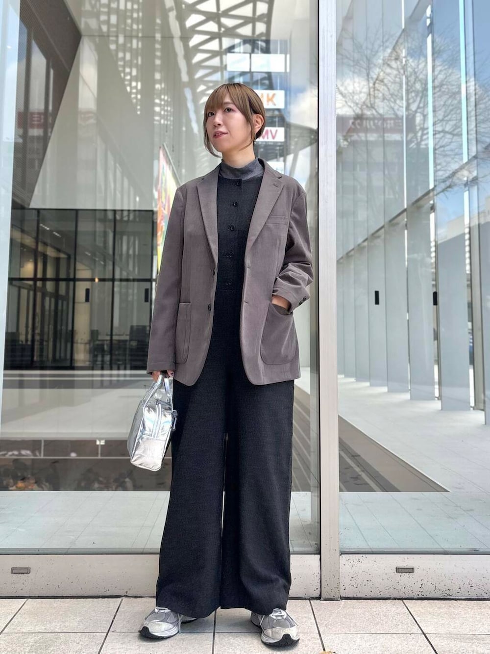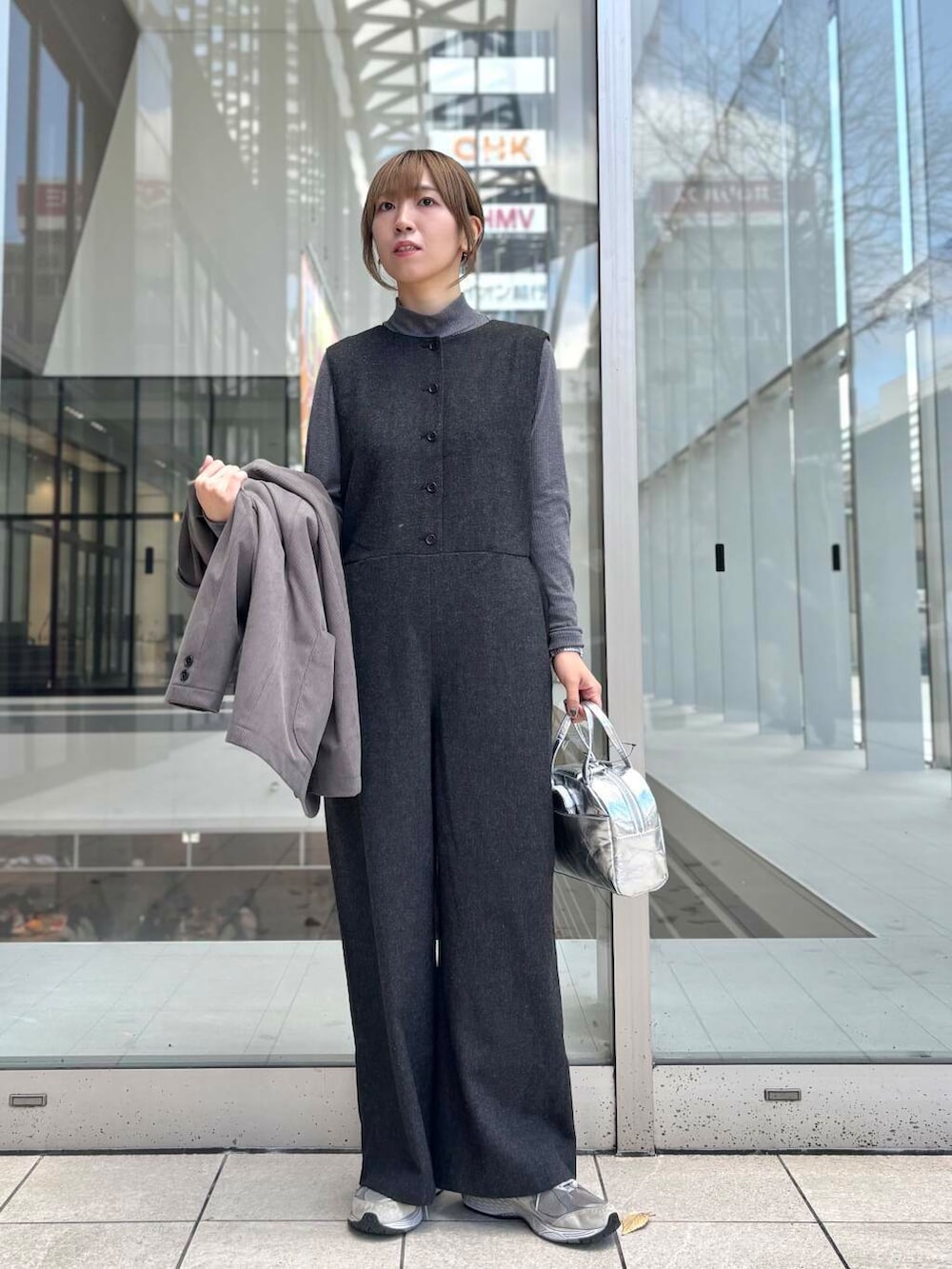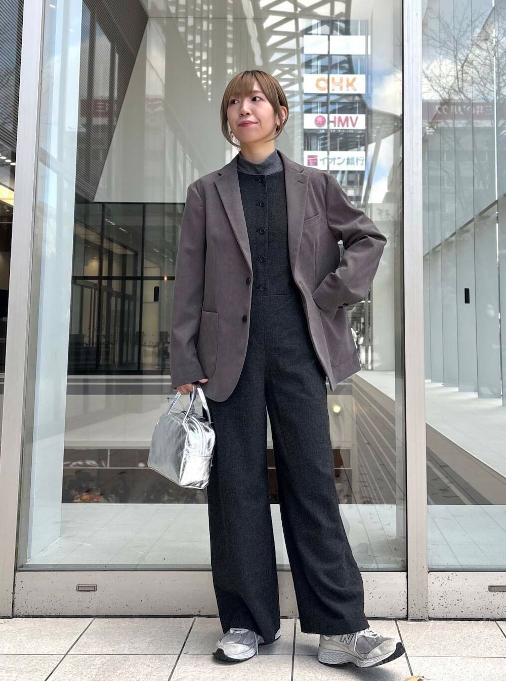 メンズのジャケットと、レディースのオールインワン、ニューバランスのスニーカーで綺麗めなカジュアルコーデにしてみました!