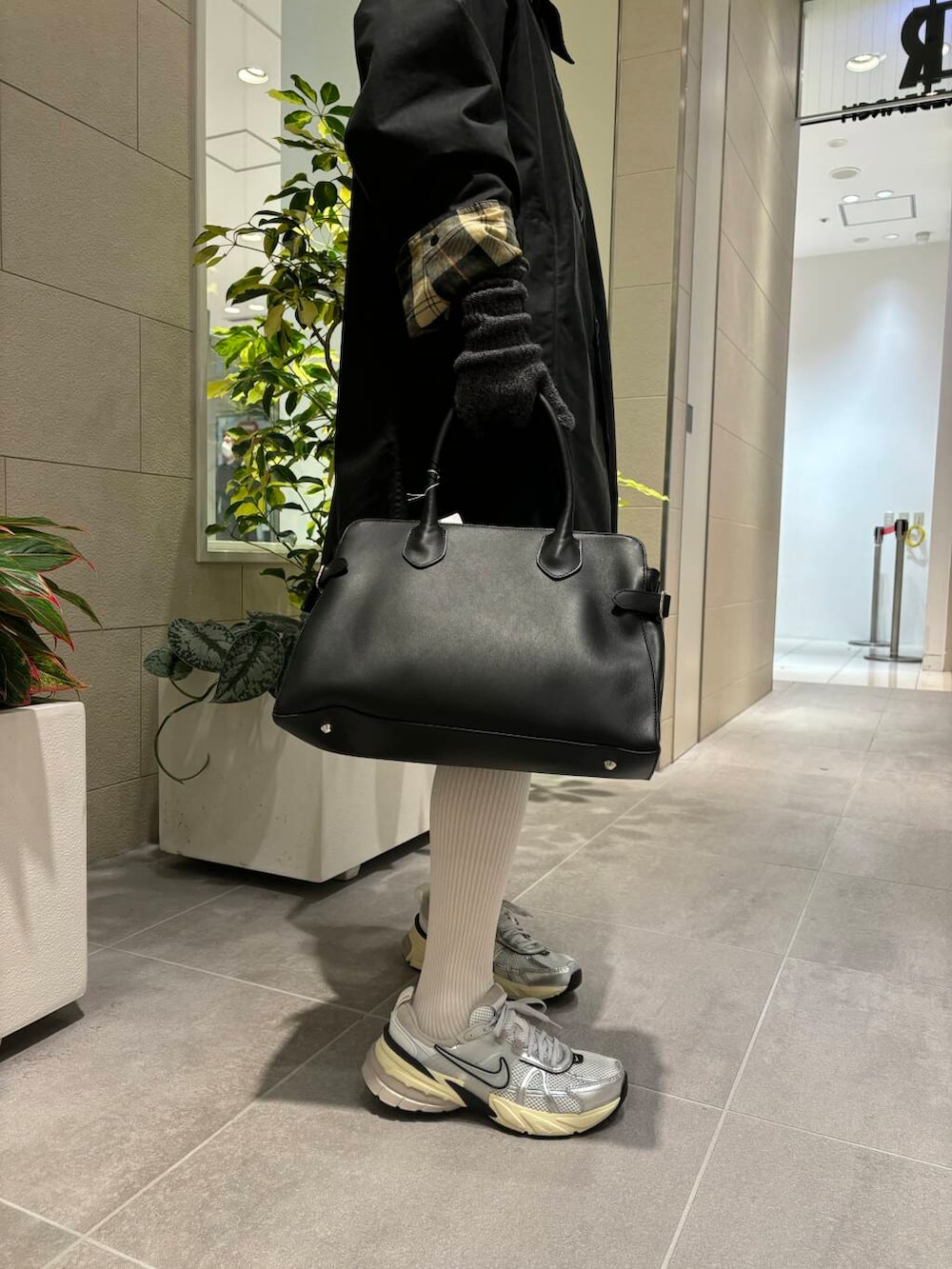 LASCAIAの別注トートバッグも大きさが丁度良くあえてカジュアルなスタイリングに、合わせるのもおすすめです🩷