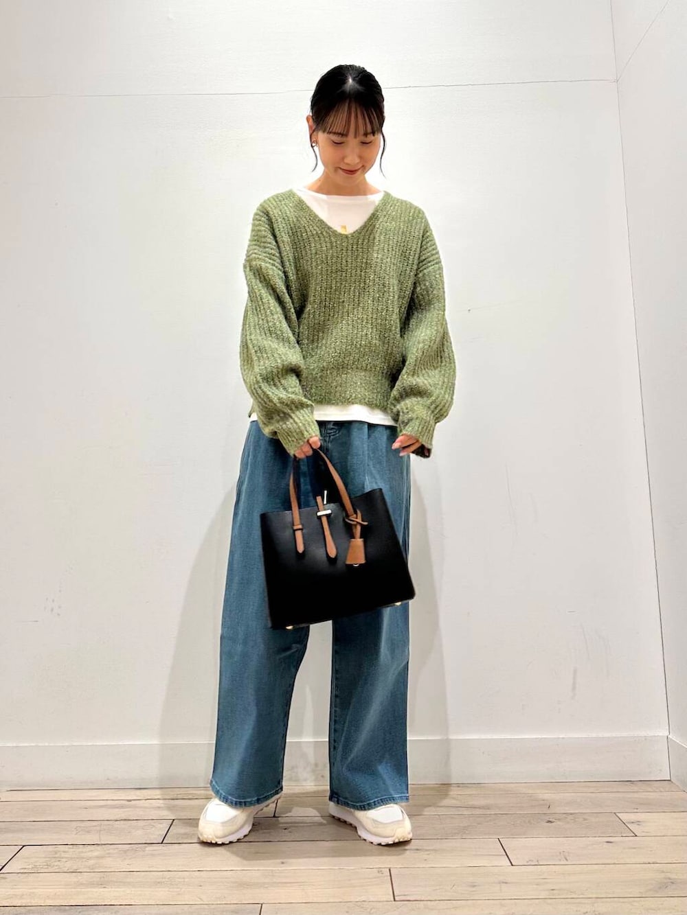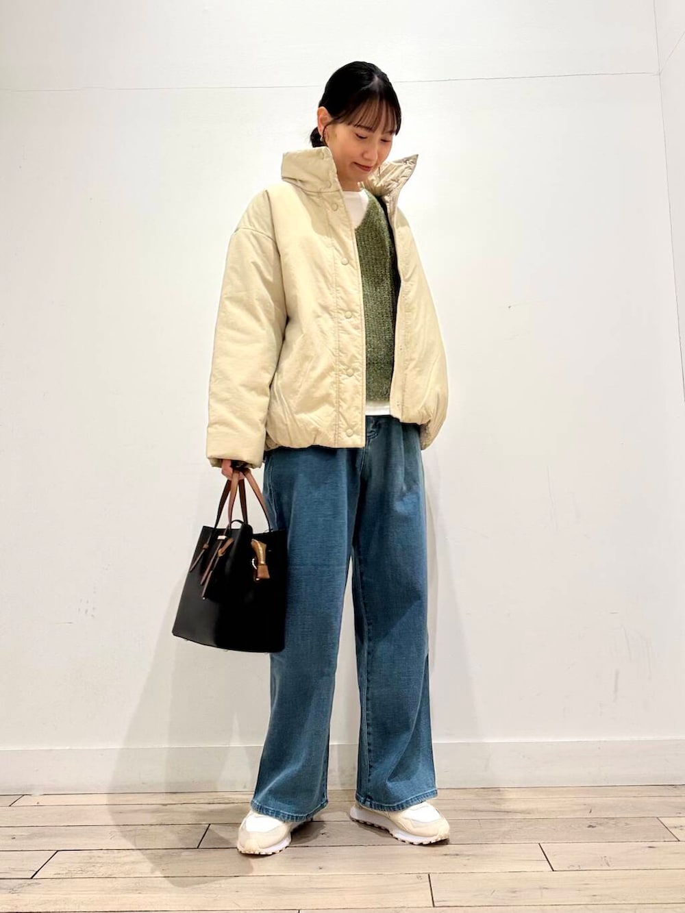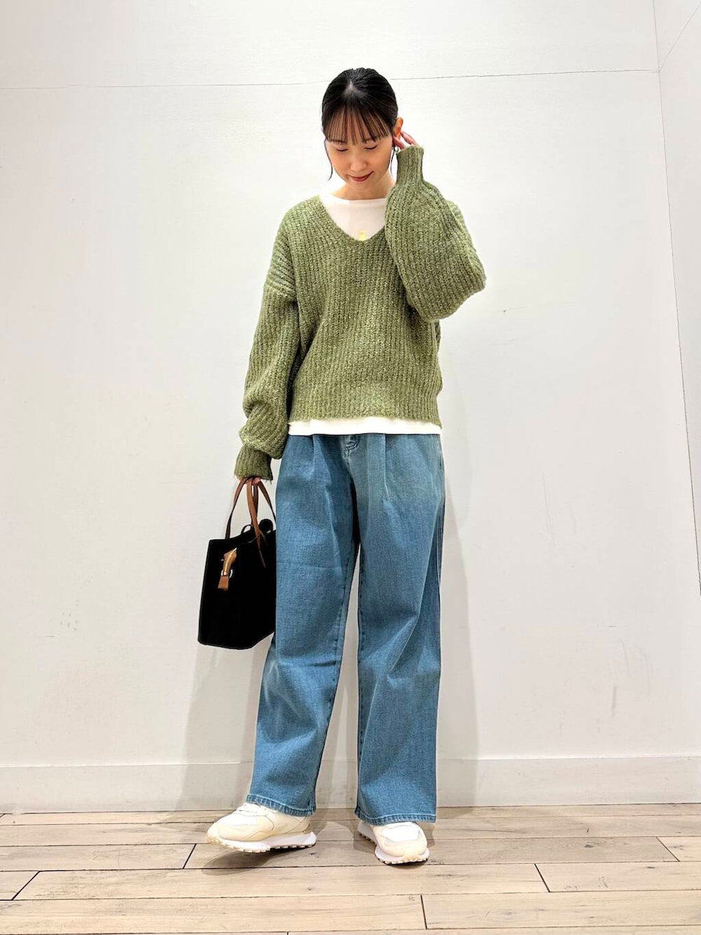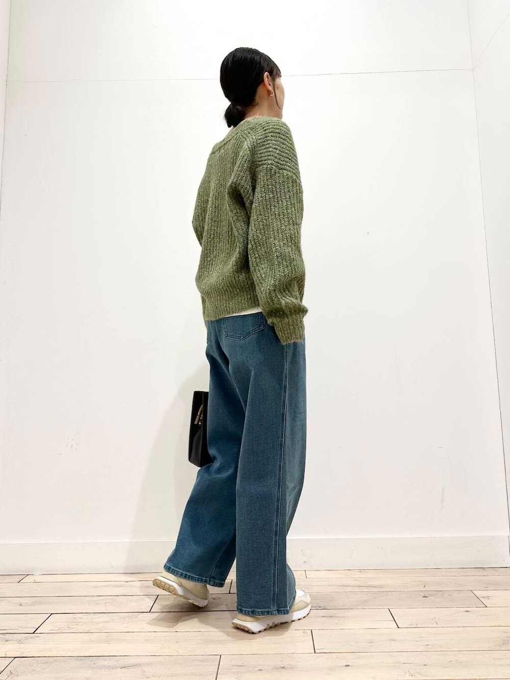 合わせたデニムは裏起毛になってますが、もこもこしていないので長いシーズン履いていただけます!