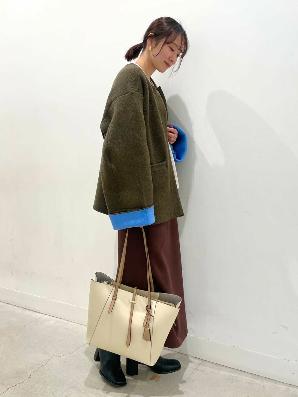 バイカラーのコートはもちもちした生地で着心地最高✨