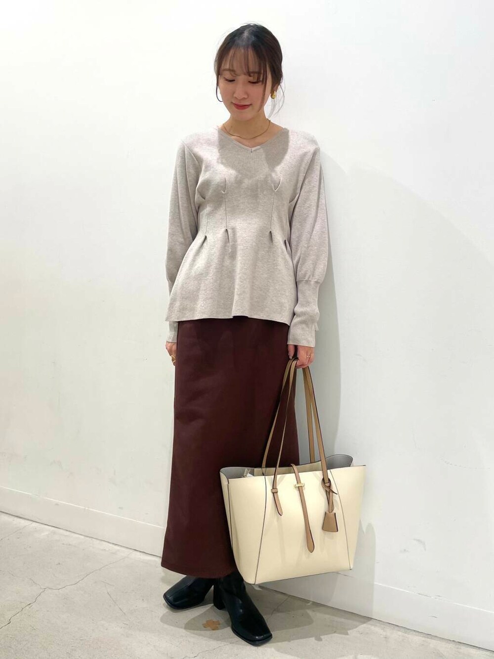 トップスはウエストタックが入っているのでタイトなボトムスとの相性◎