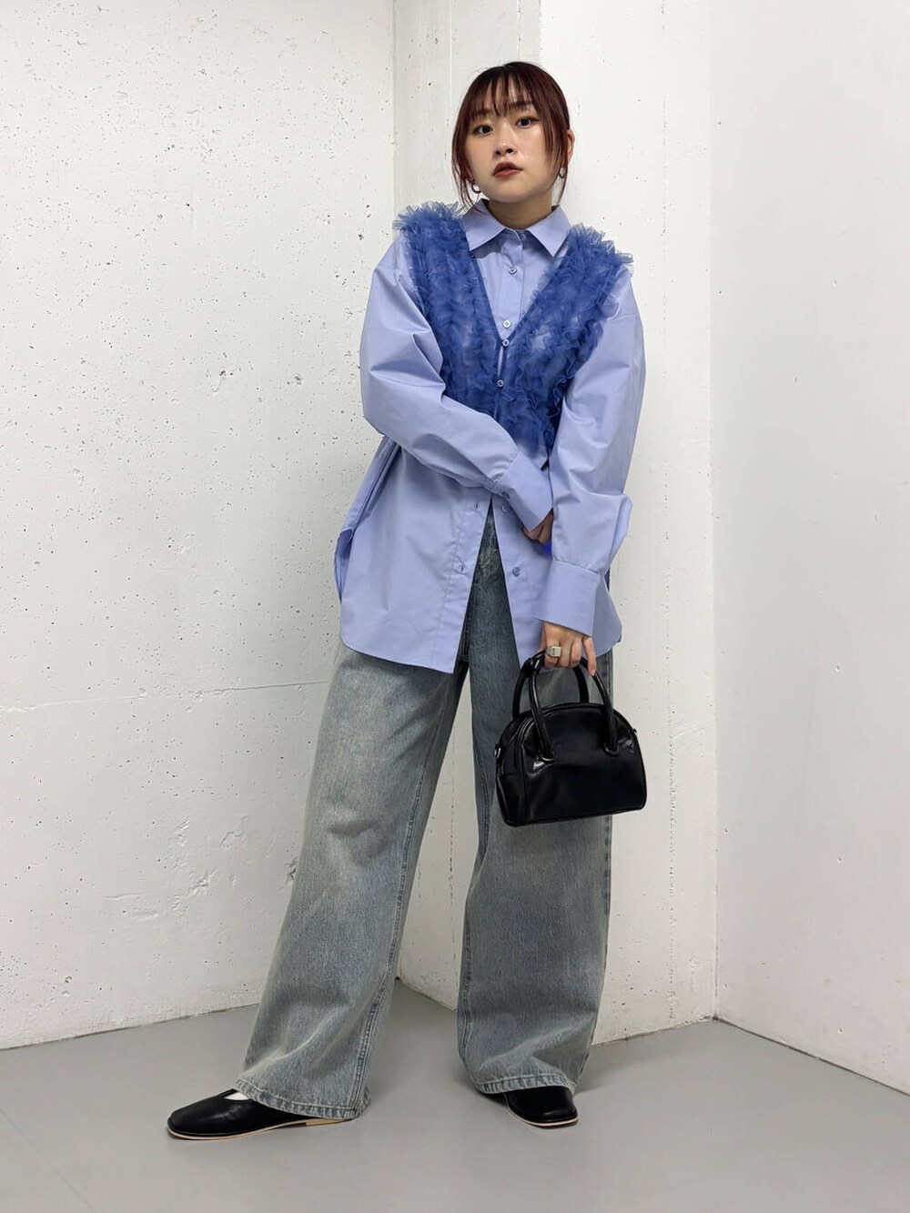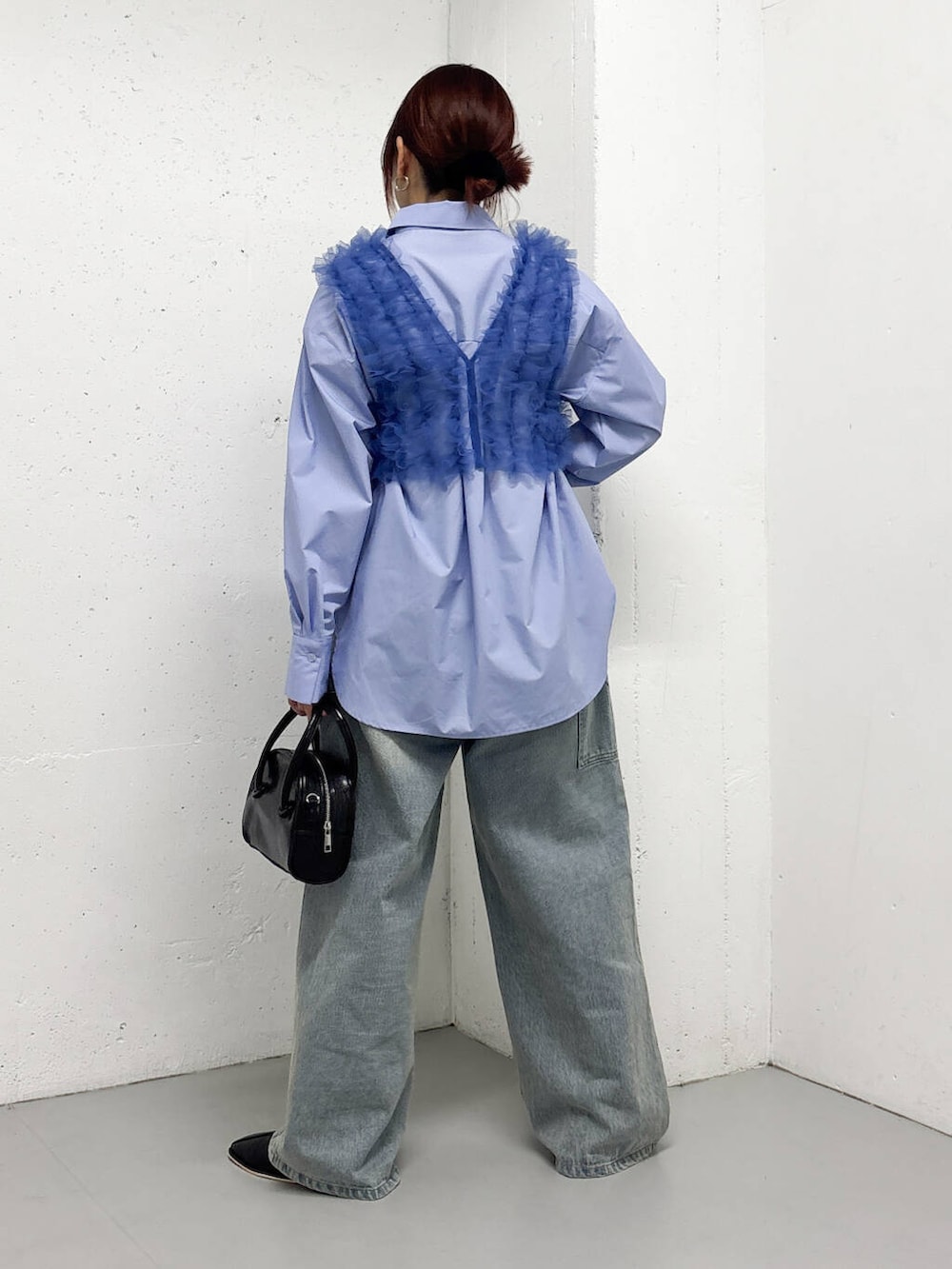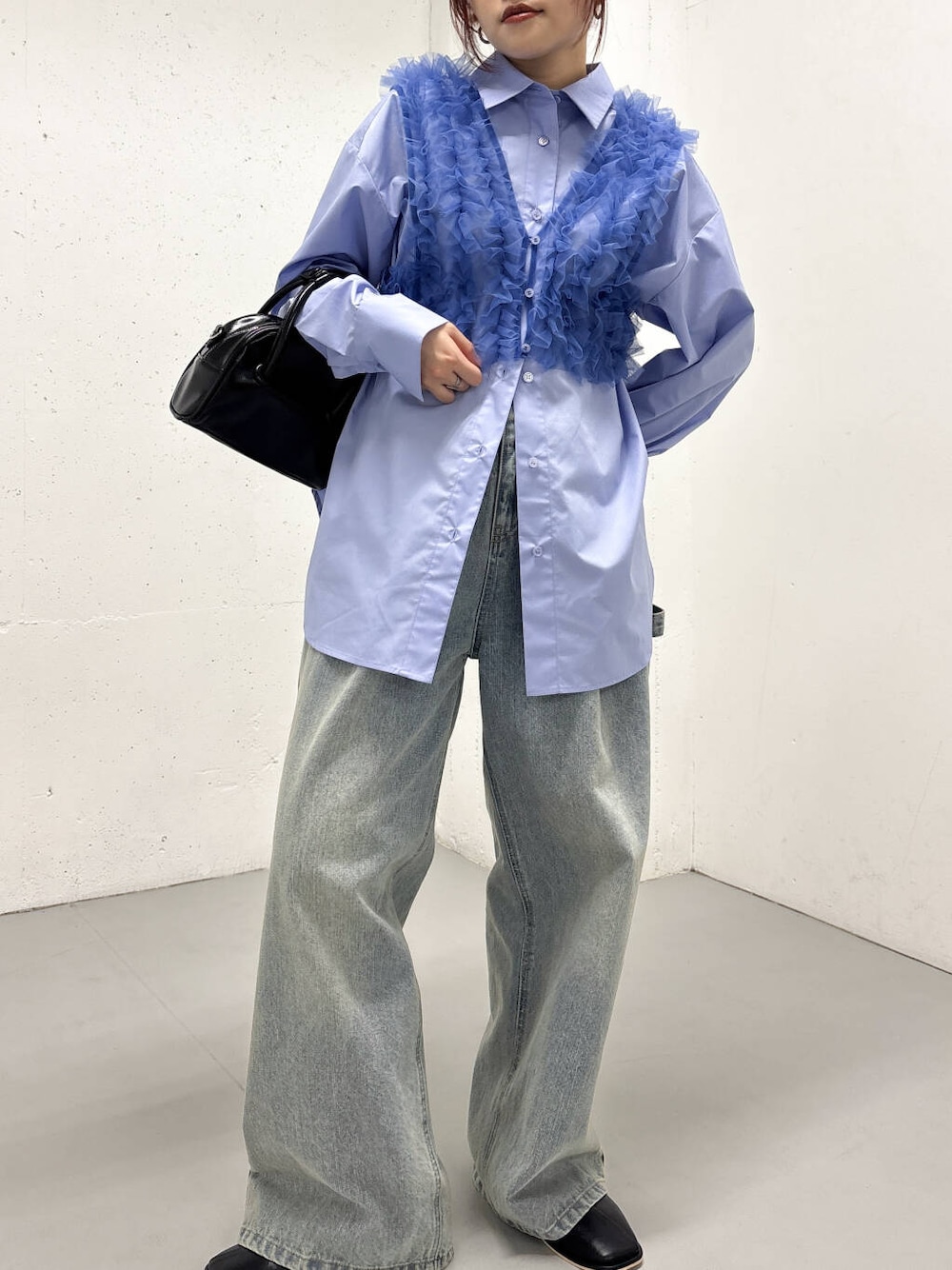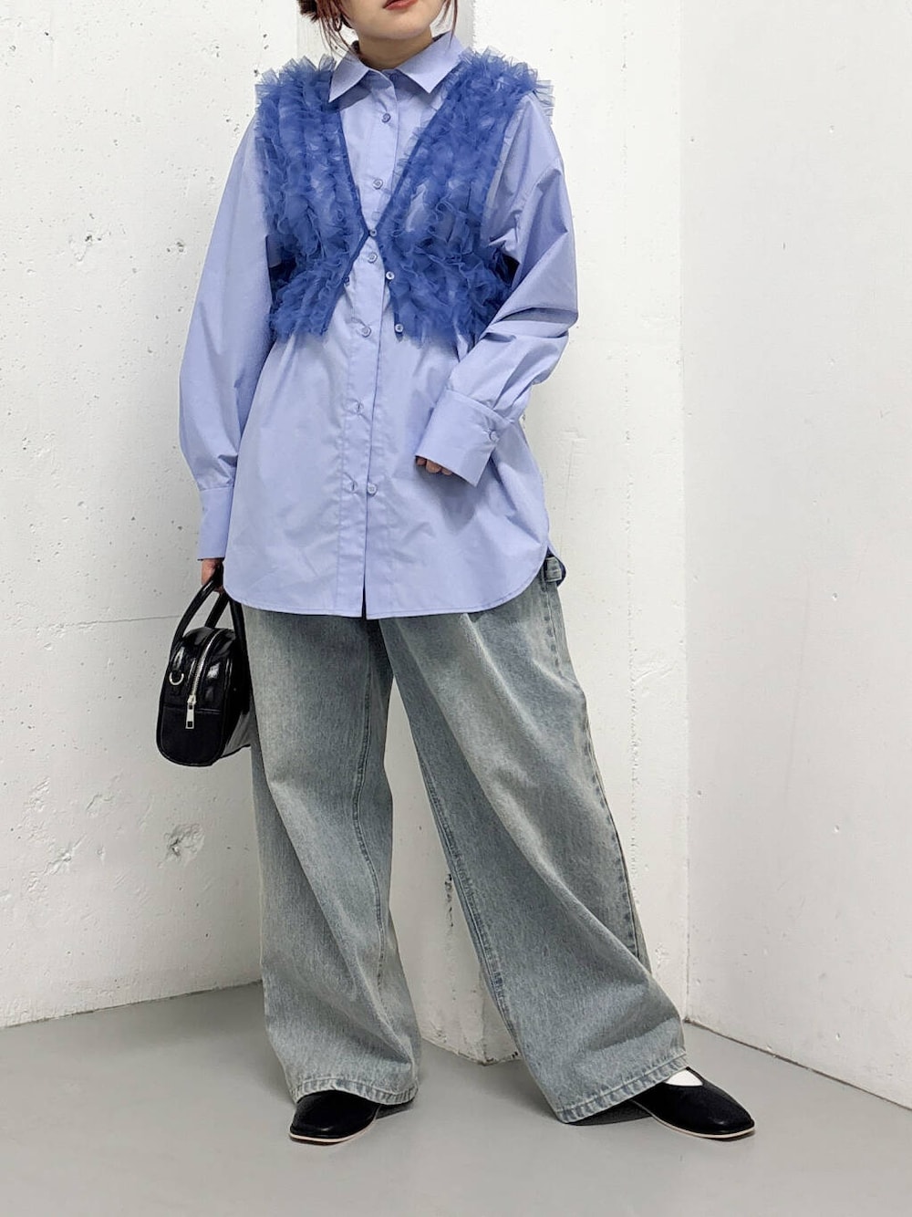 シンプルな長めのシャツと