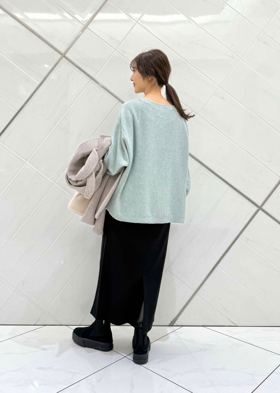 袖はドルマンスリーブになっており、身幅も広めなのでリラックス感のある着心地です。