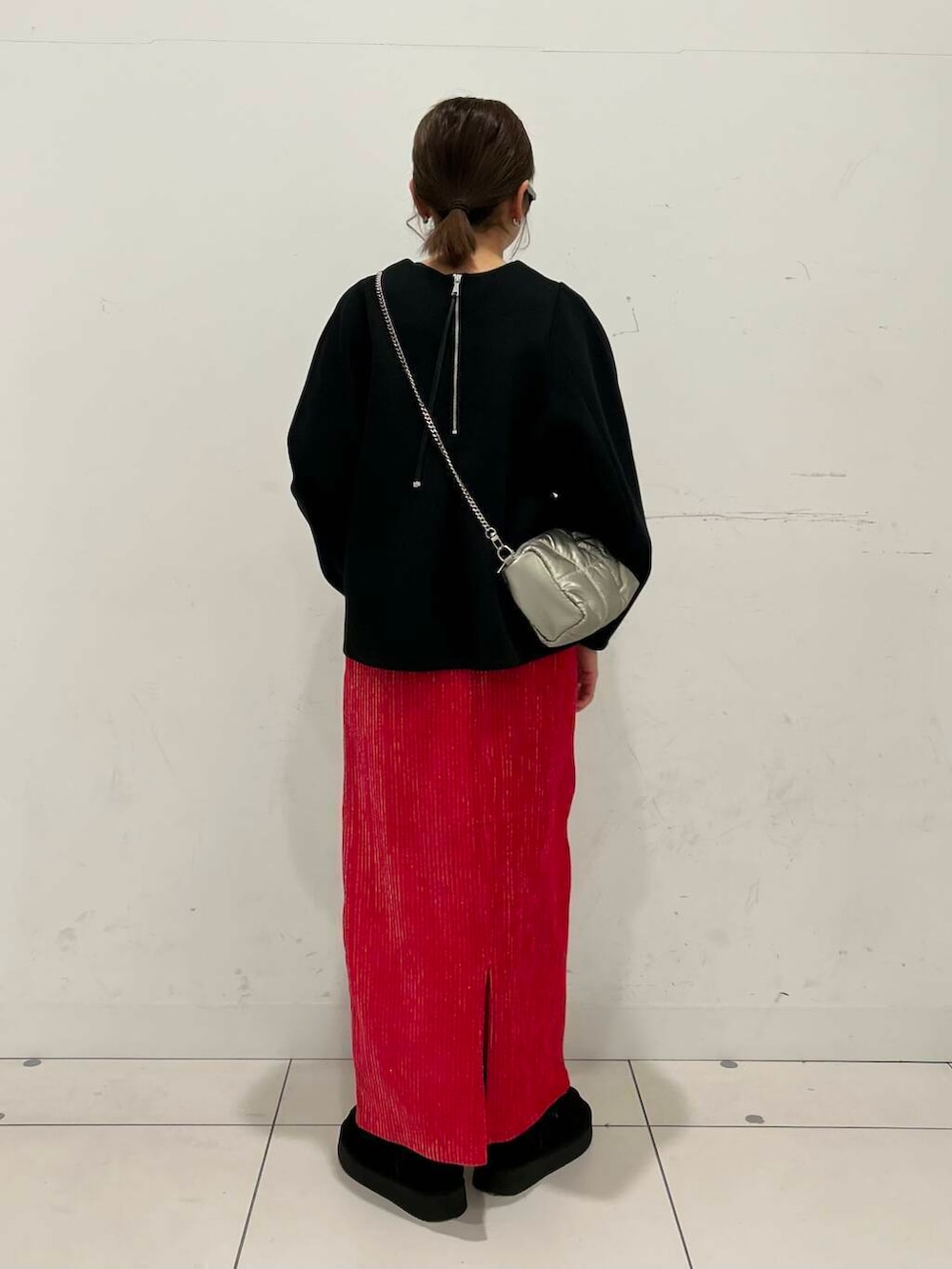 立体感のあるシルエットが特徴のダンボールトップスとクリスマスカラーのかわいいREDのスカート合わせてみました🎄⭐️