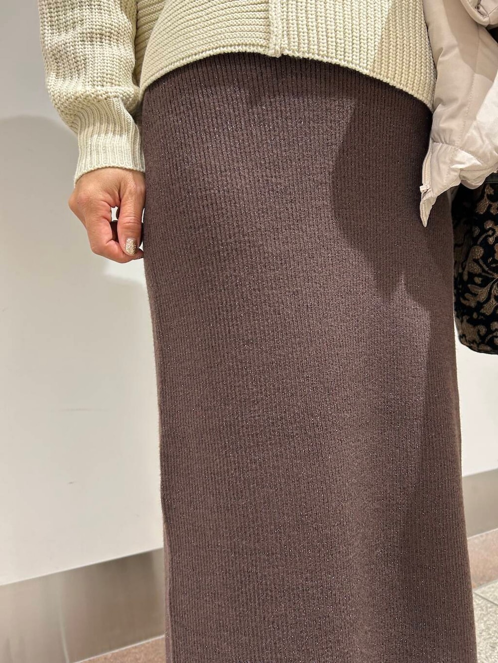 ラメニットスカートは、スリットがないのでタイツなどの重ね着が出来て、縮性があるのでとても動きやすいのでオススメです!