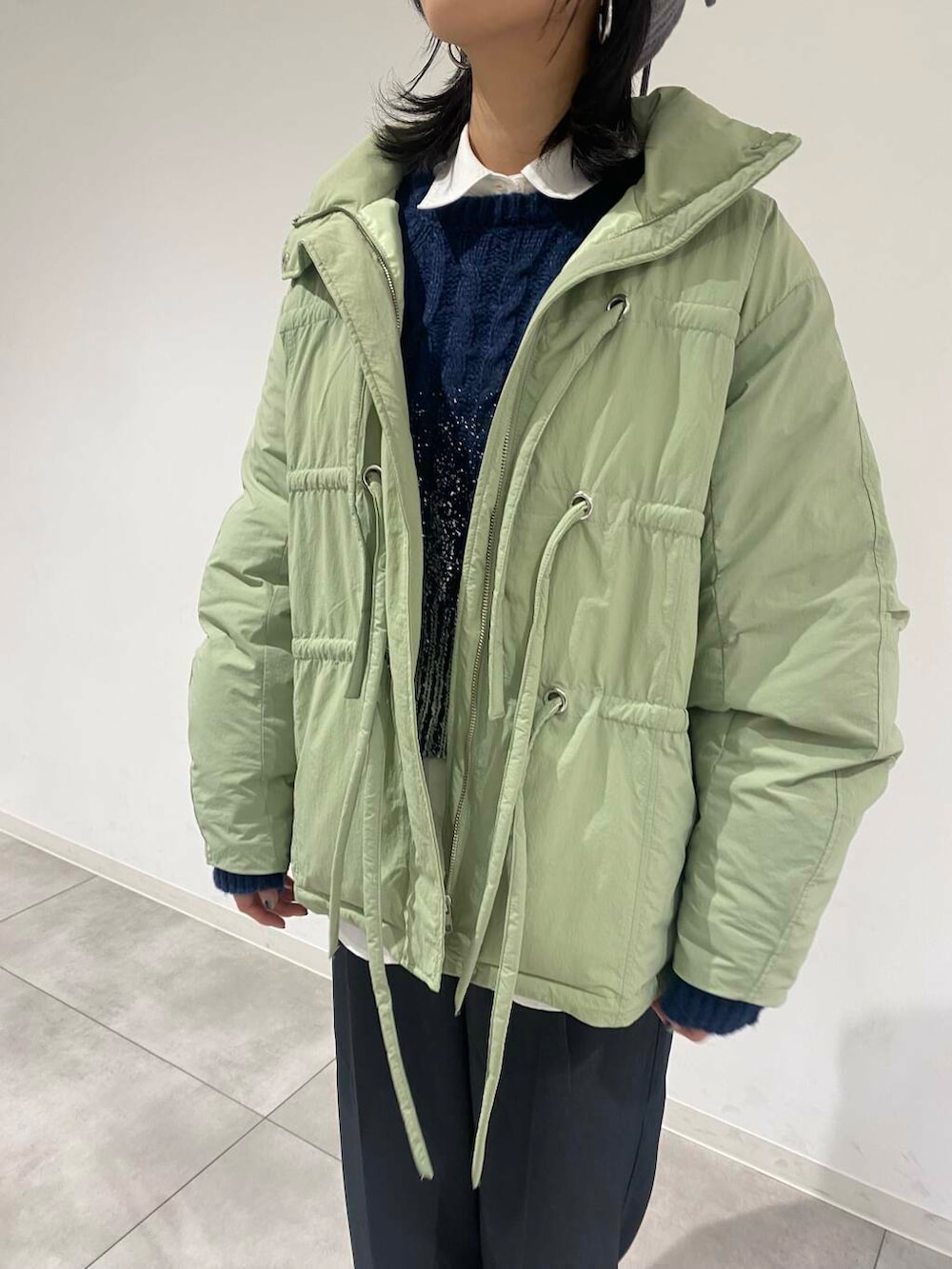くすみグリーンが大人可愛く、人と被りにくい色味のアウターで冬のお出かけをとびきり楽しんでみませんか☺️