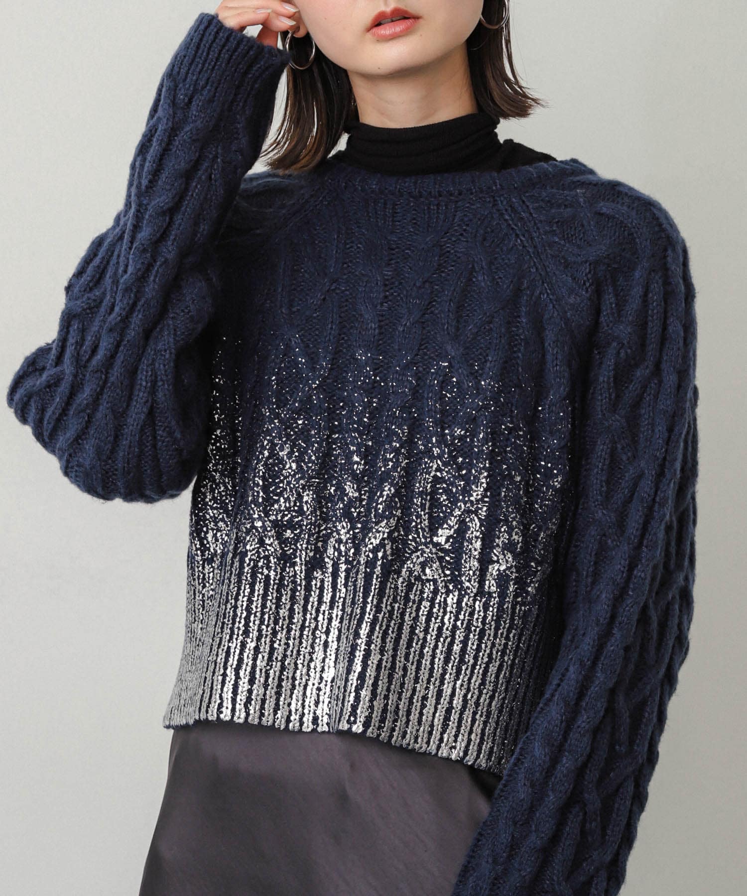SENSE OF PLACEハクプリントラグランケーブルセーター