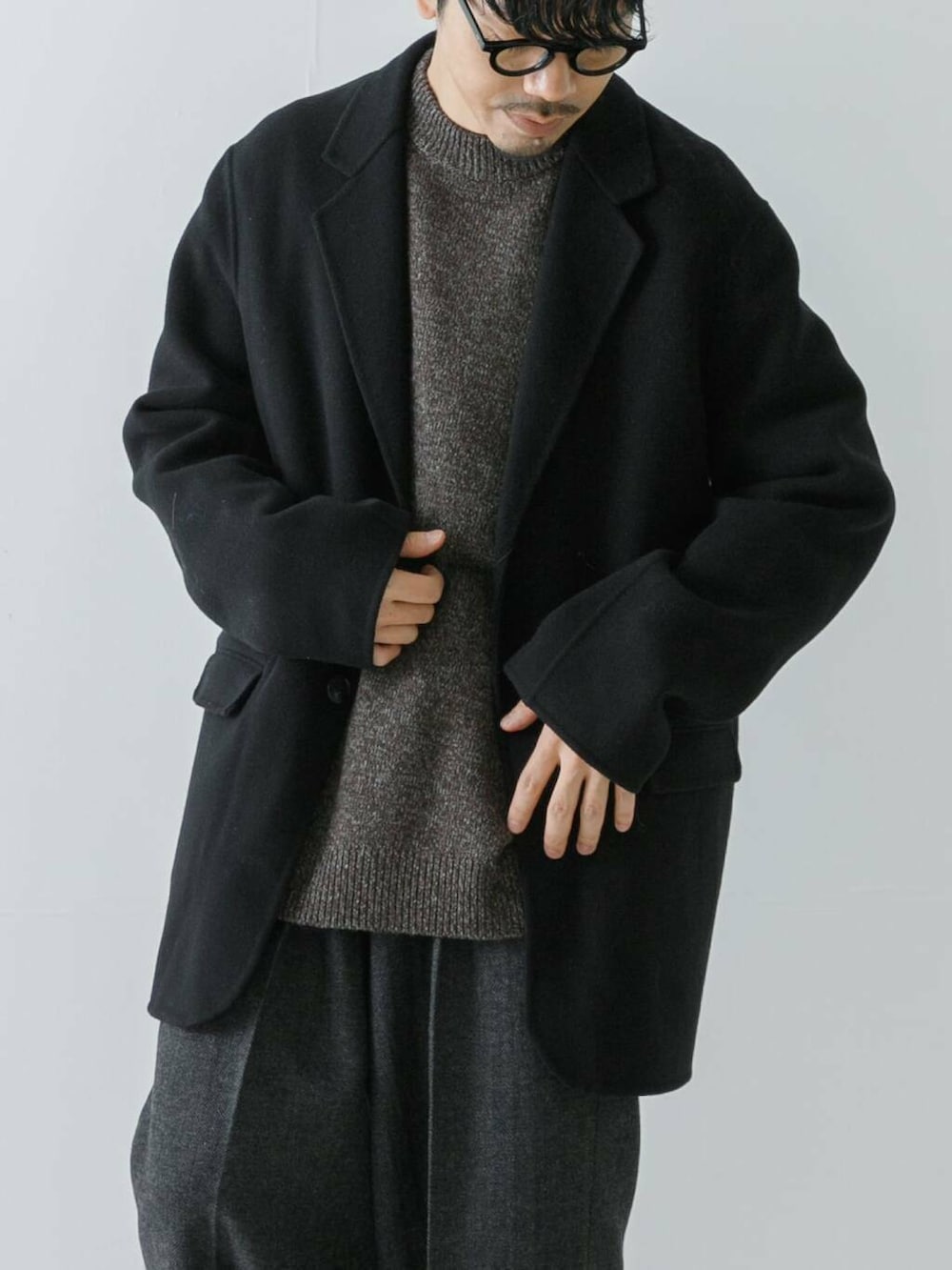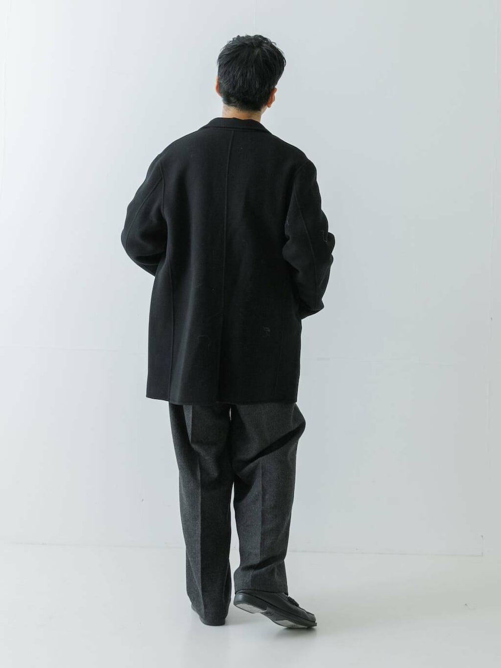 いつものスタイリングにこのコートを羽織ることでジャケット冬バージョンが完成します。