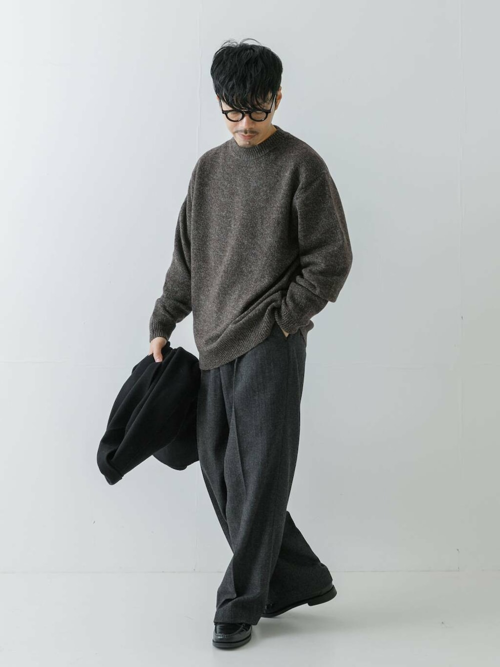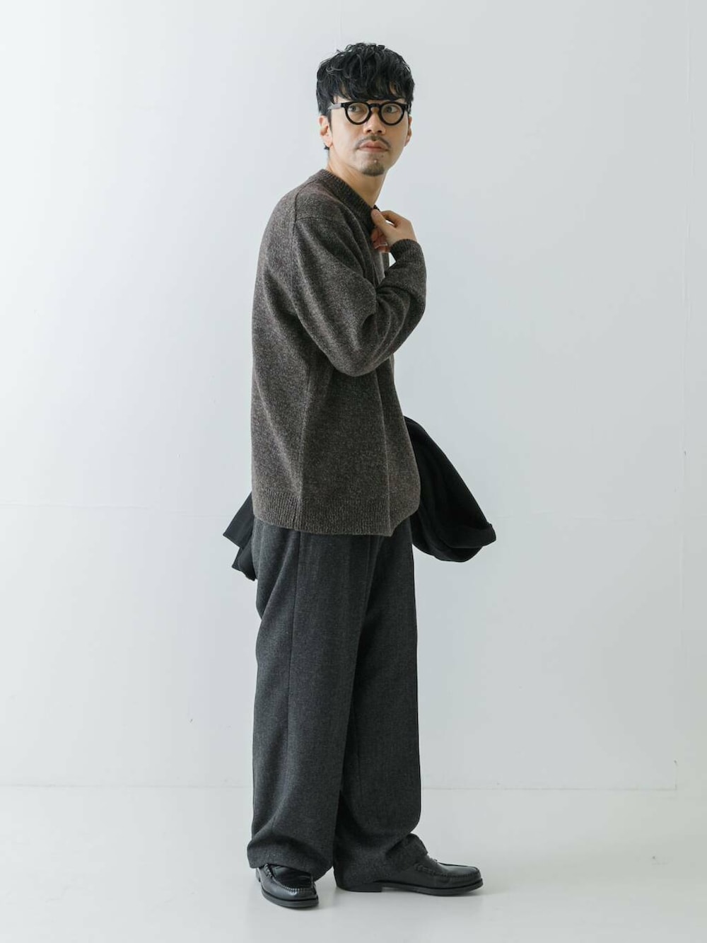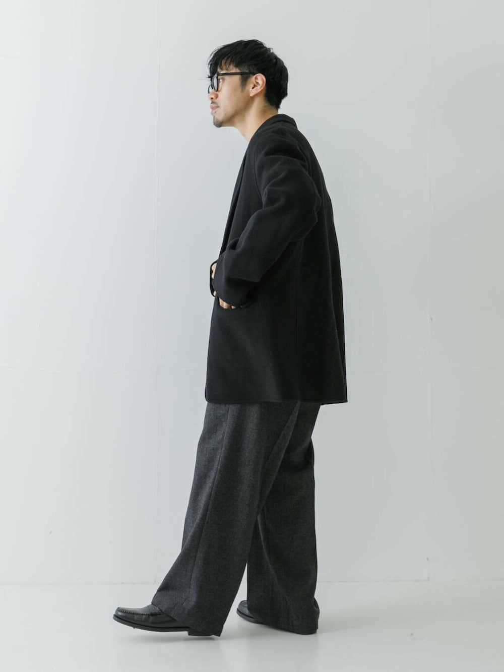 今回はワイドなサイジングで雰囲気あるゆったりきれいめコーデにしました。