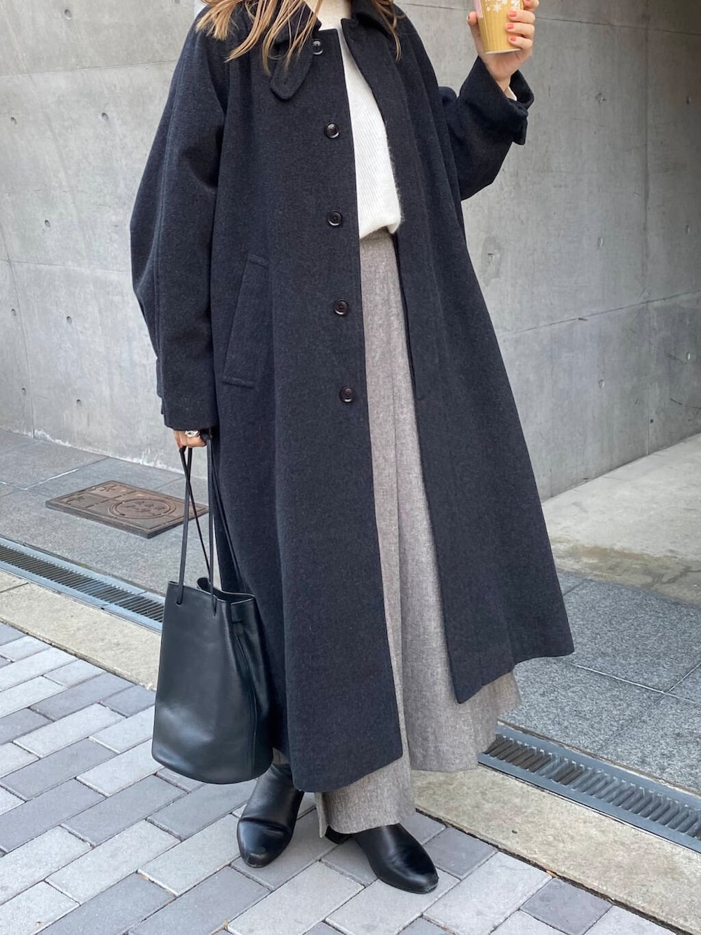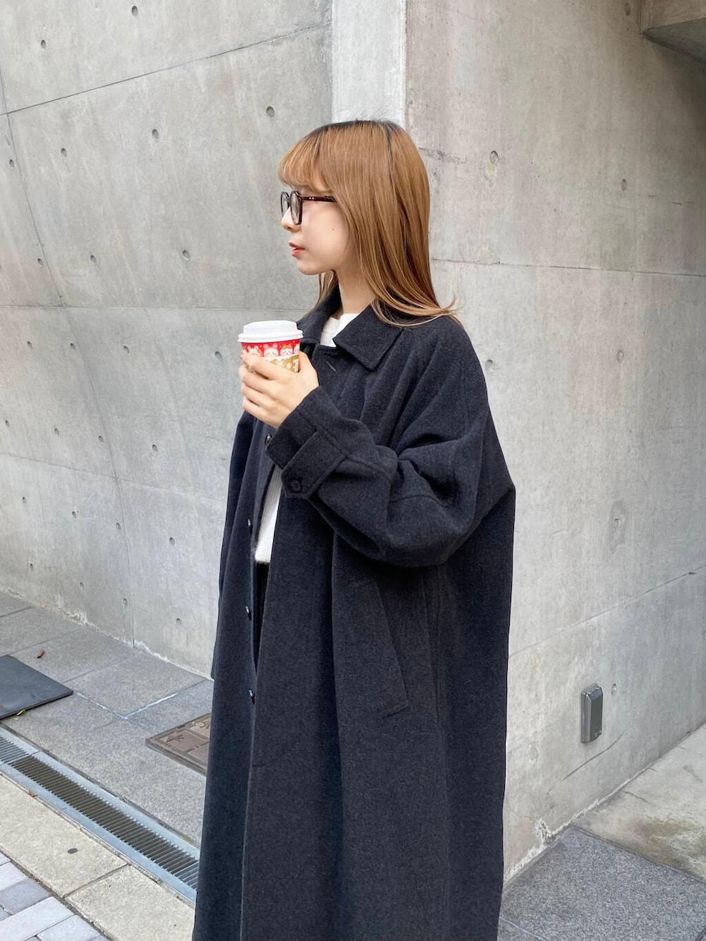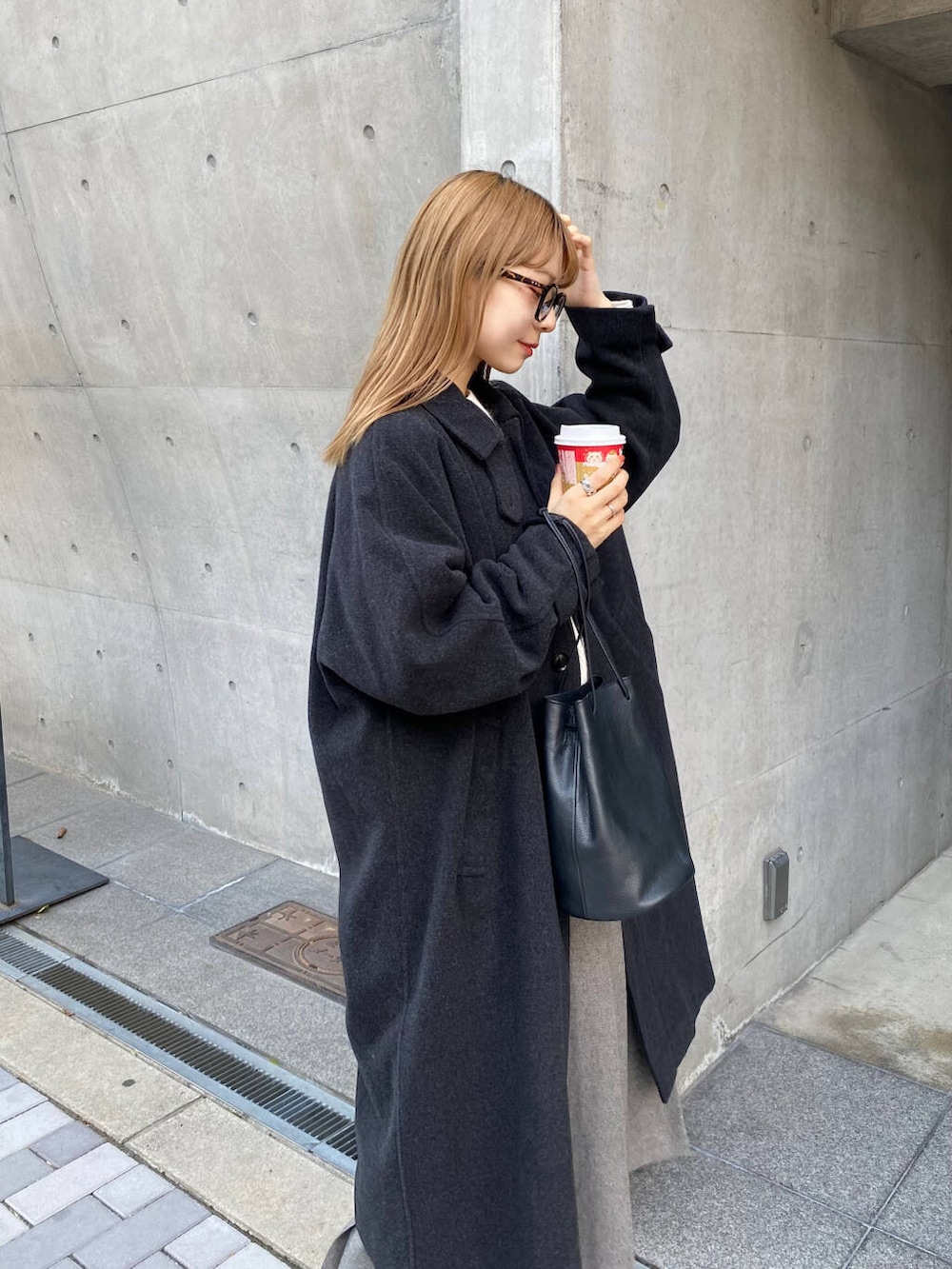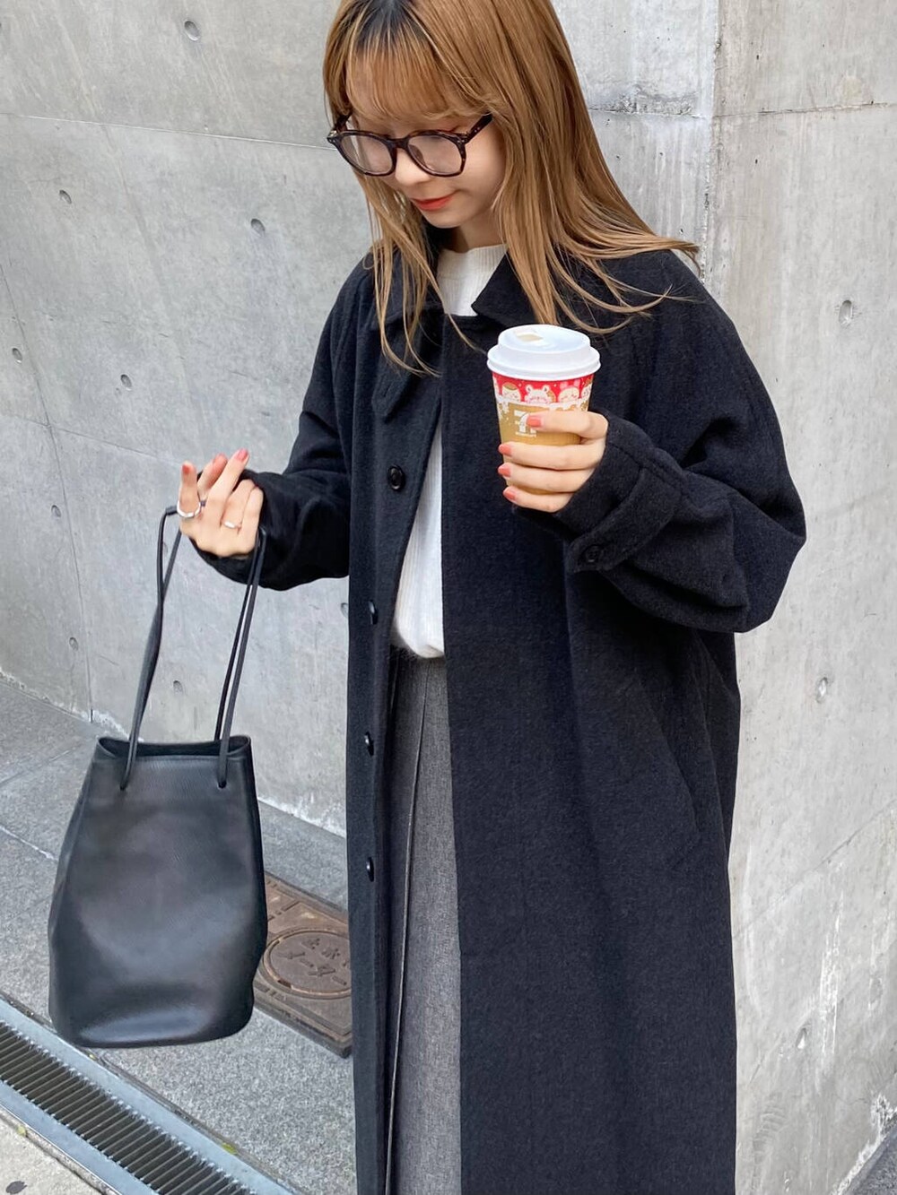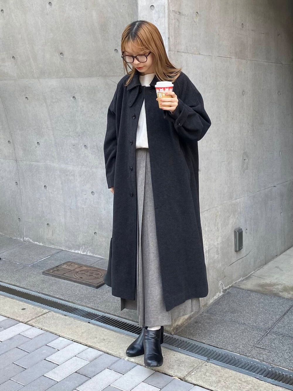 中には白のニットを合わせて、重たい雰囲気になりすぎないようバランスを取りました。