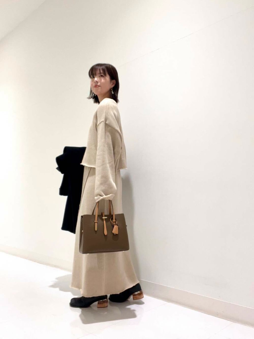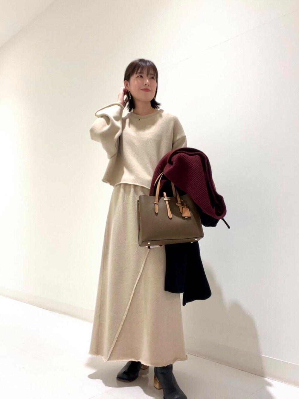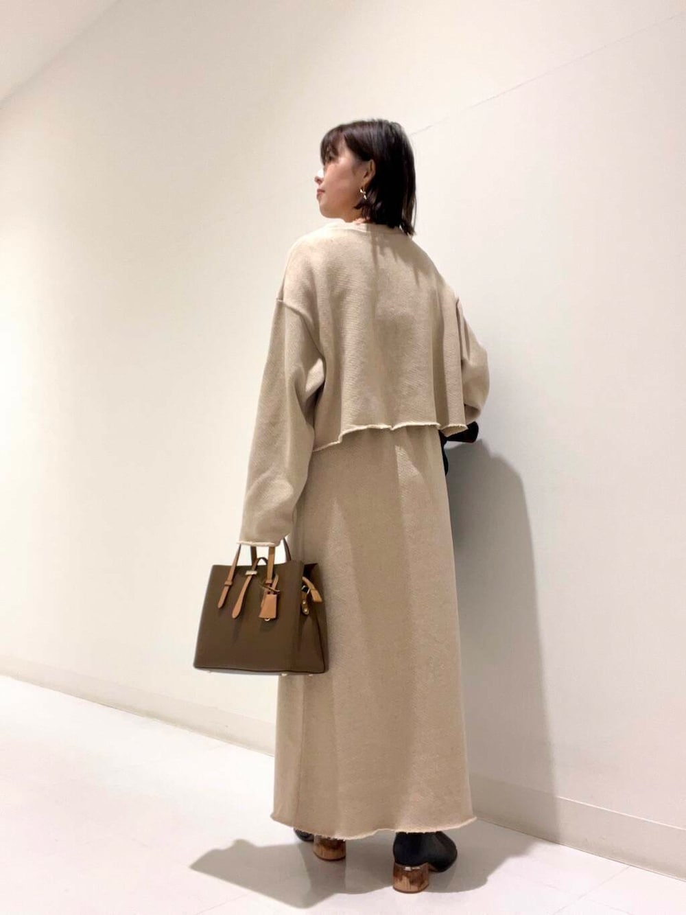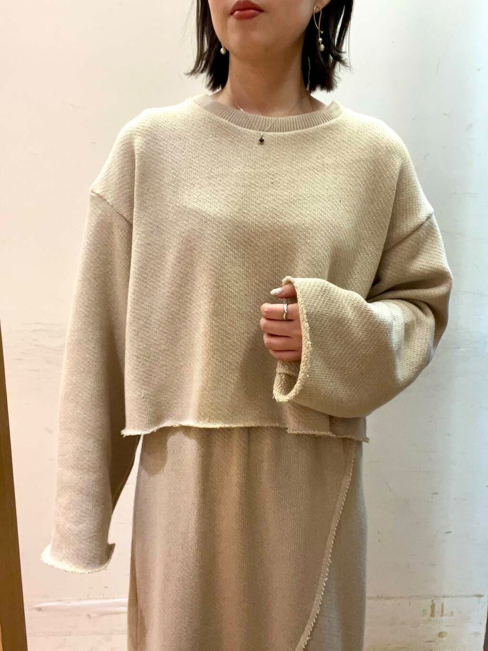 トップスの袖、スカートの裾は広がったデザインで、素材とともに柔らかい雰囲気を演出します!