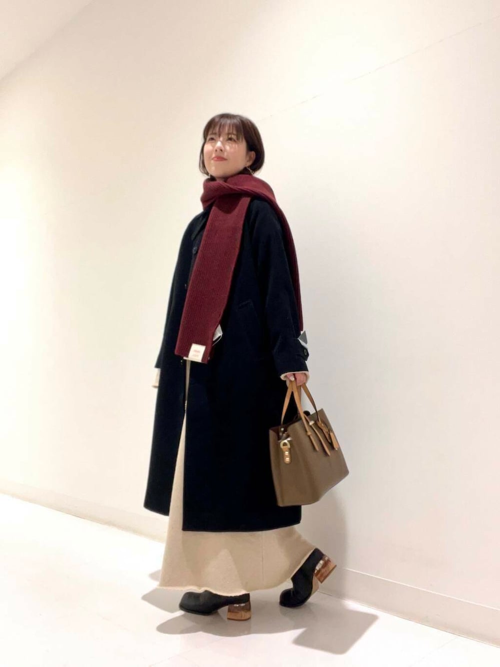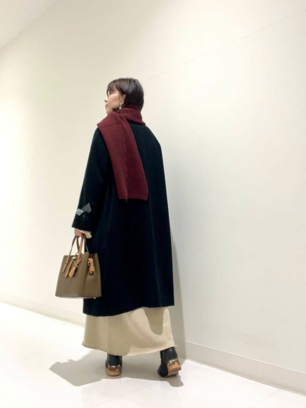 全体的に無地で揃えてシンプルめなので、マフラーの色味を締め色にしました◎