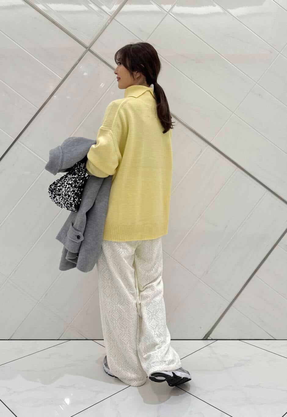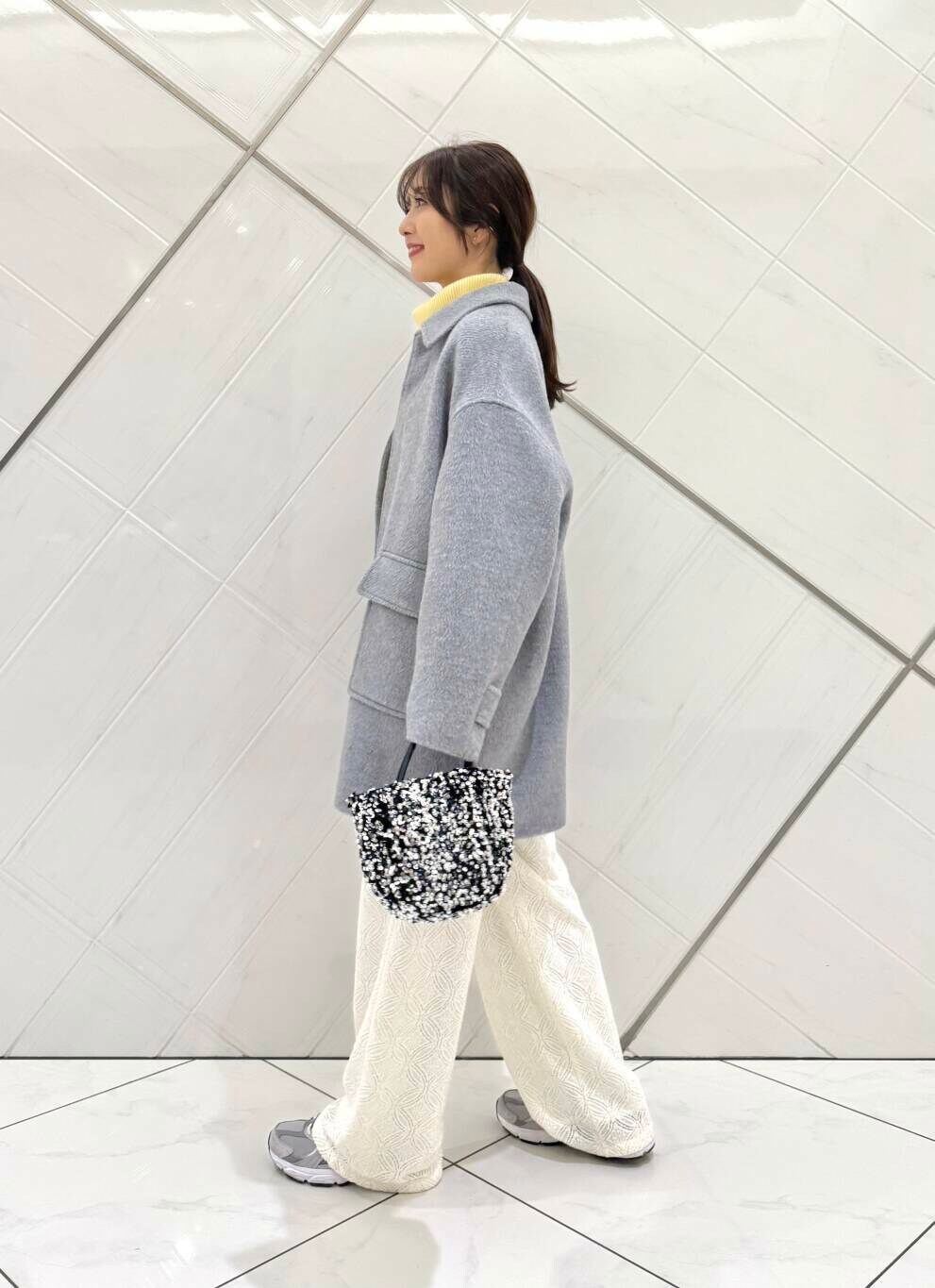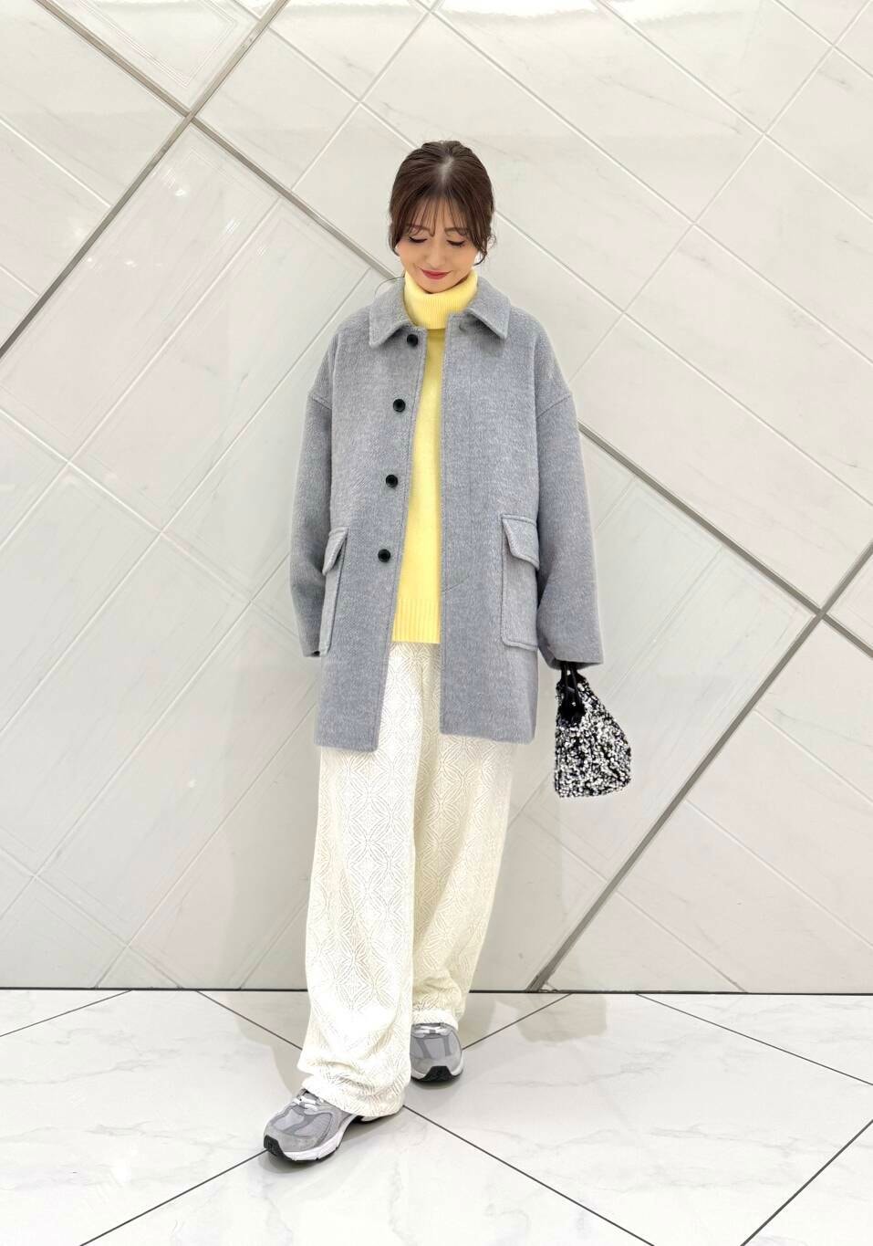 ゆったりめのサイズ感なので厚手のトップスの上からでも羽織りやすく、腰回りがカバーできるミドル丈です。