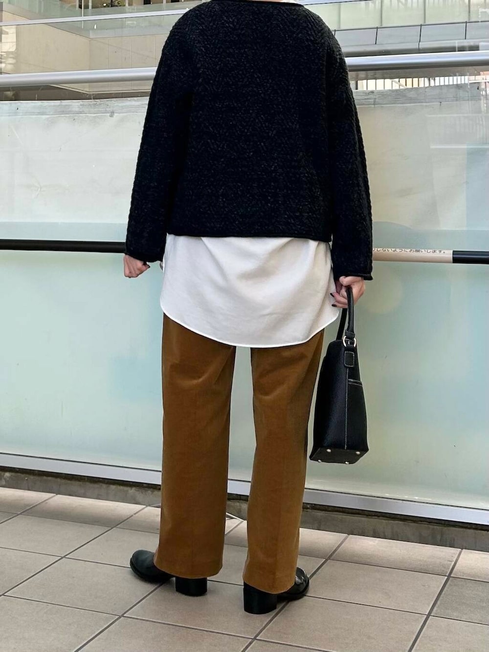ボトムは色味がキレイなコーデュロイパンツを合わせました。