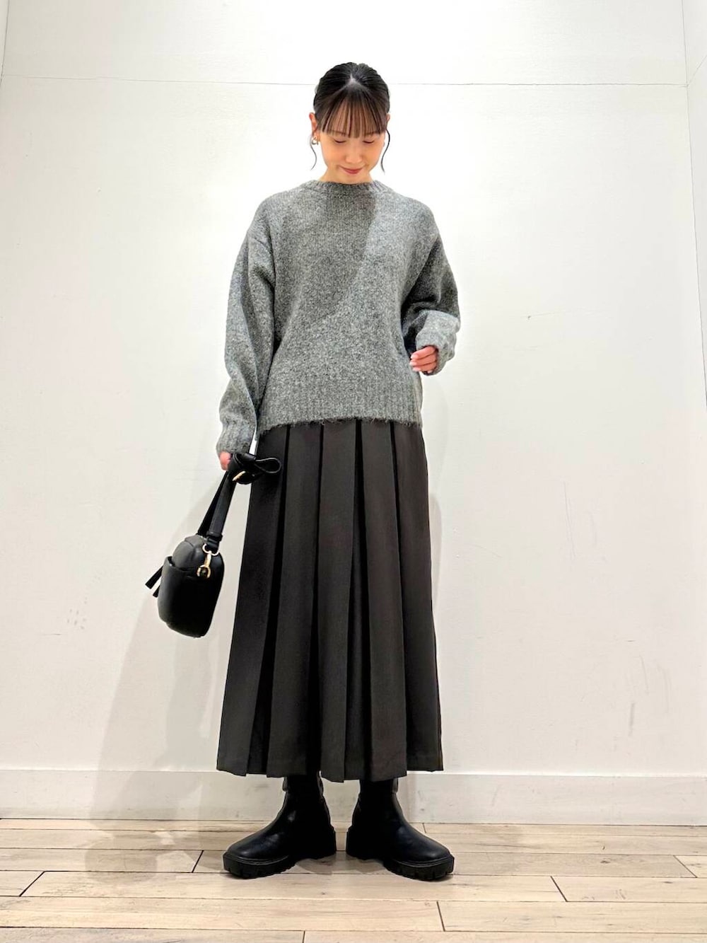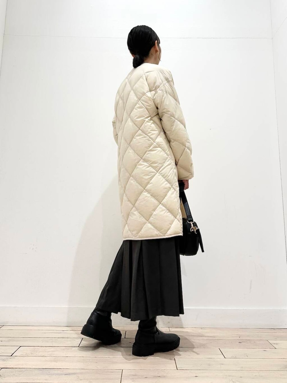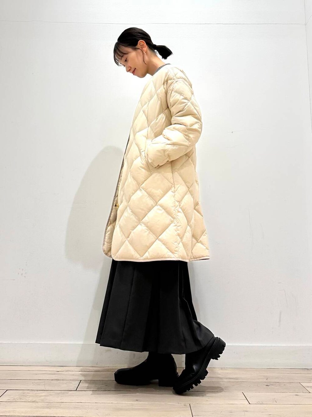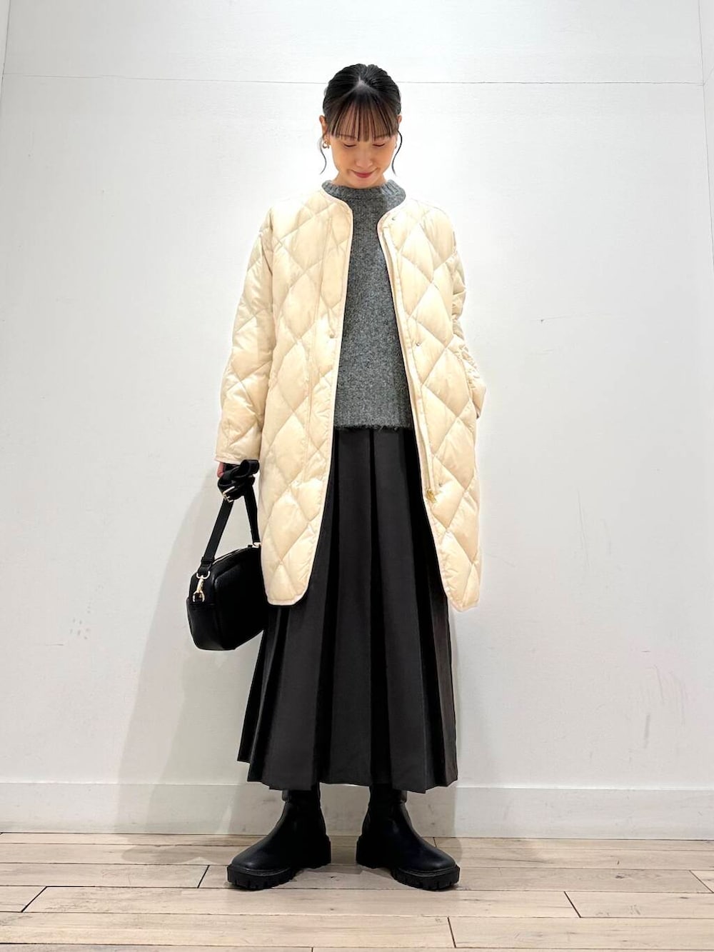 ロング丈は膝までしっかり温かく、縦ラインを作ってくれるので意外にも着膨れが気になりません◎