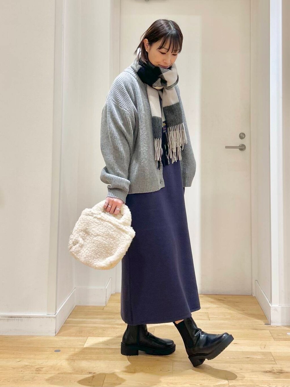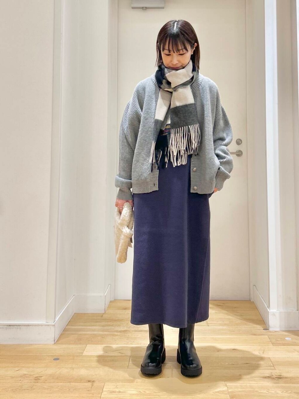 カーディガンは、ウール素材でしっかり温かいのでアウターがわりに羽織ったり、真冬はアウターの中に重ねたり…長い時期に活躍してくれますよ◎