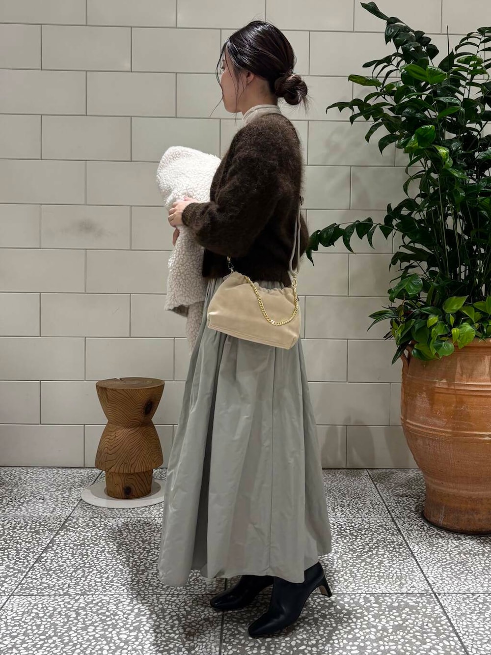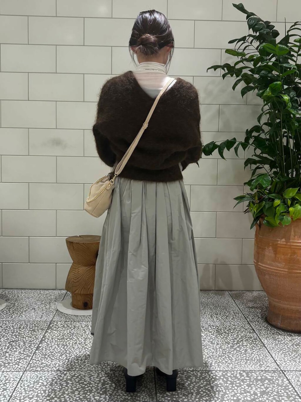 しっかりとした生地で広がりがありボリューム感の出るスカートです。ウエストは紐で調節可能です。