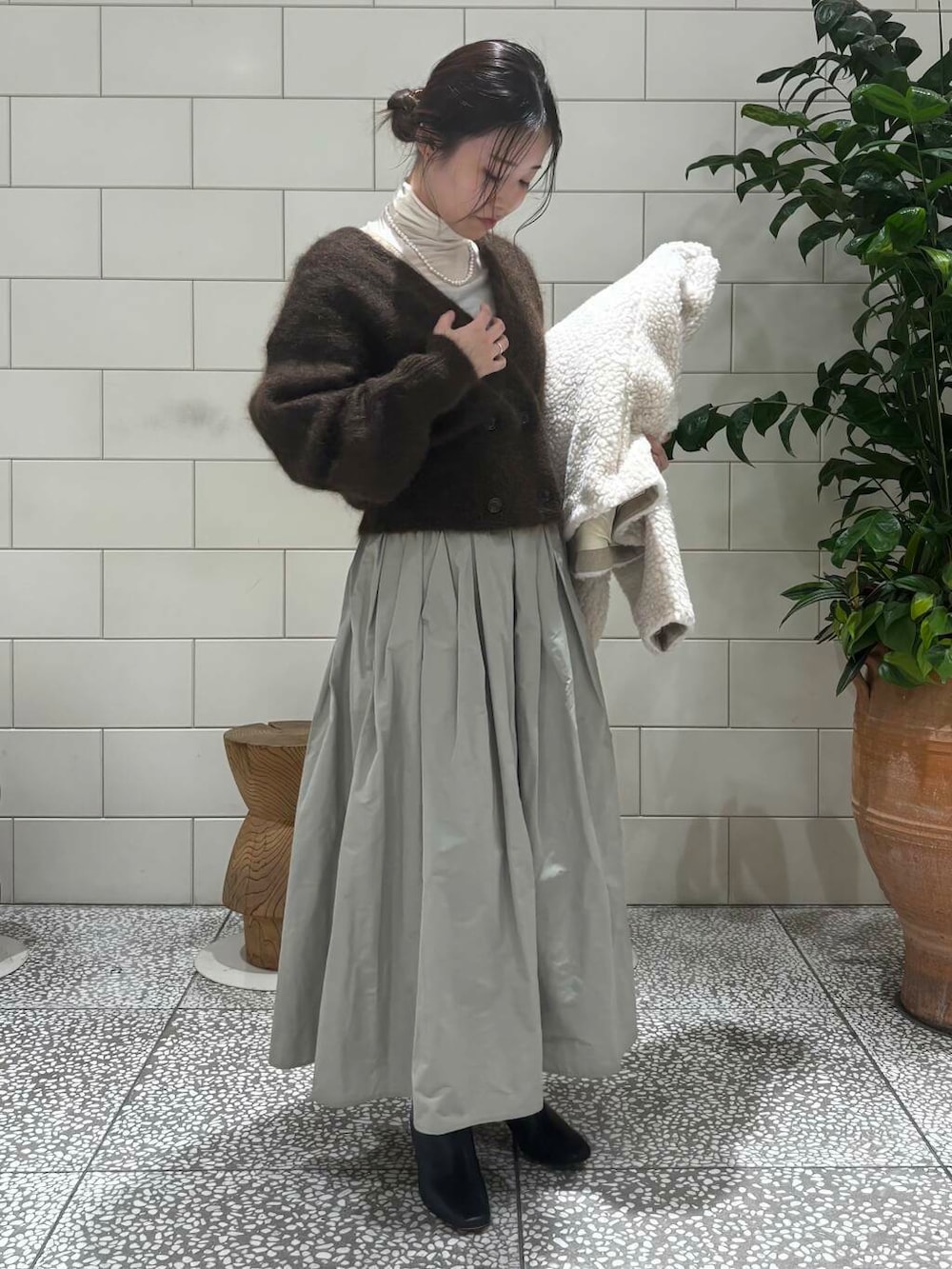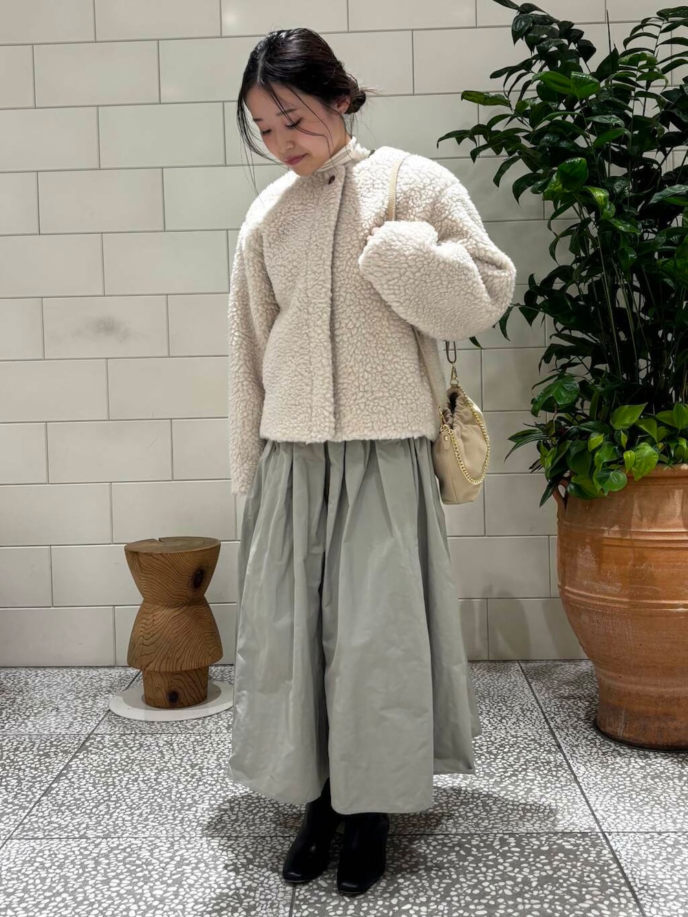 季節感のあるボアジャケットです。しっかりとした生地感で暖かいです。柔らかいシルエットで可愛らしくまとまります。
