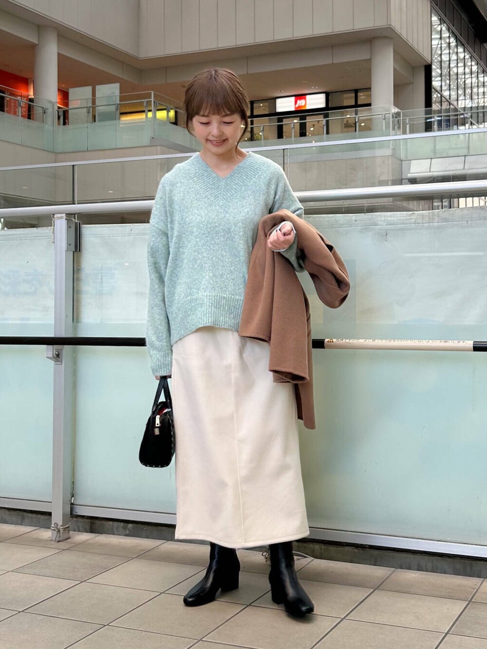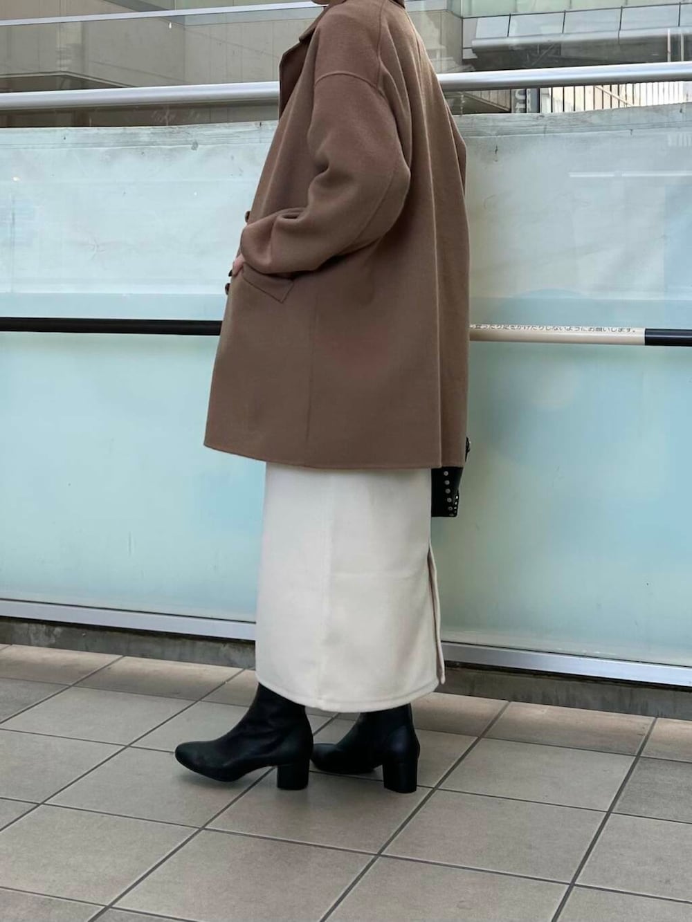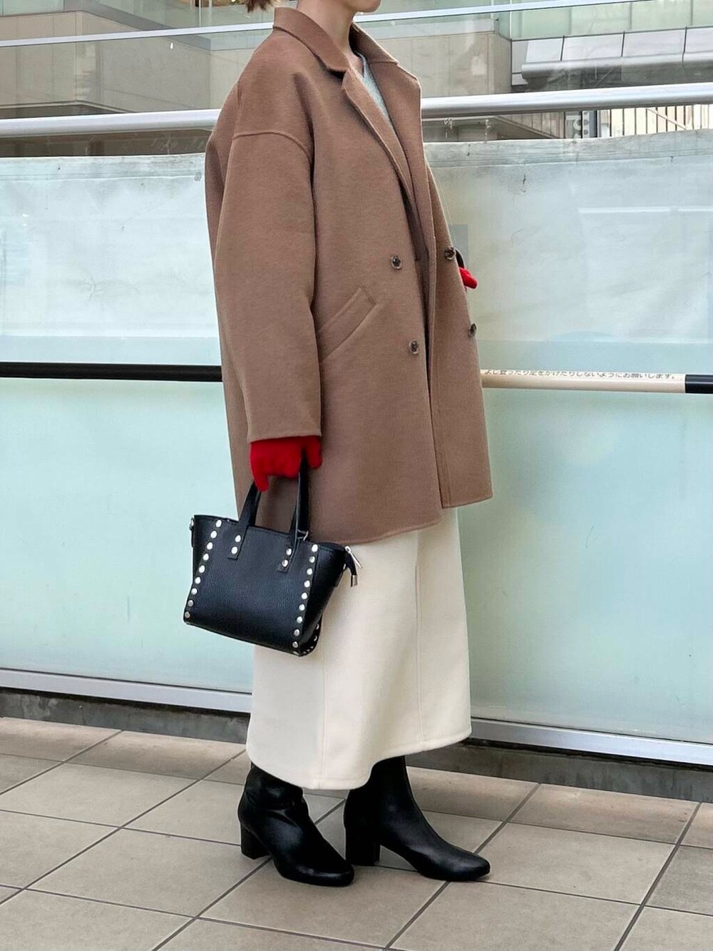 アウターはキャメルを合わせて全体的に明るいコーディネートにしました。