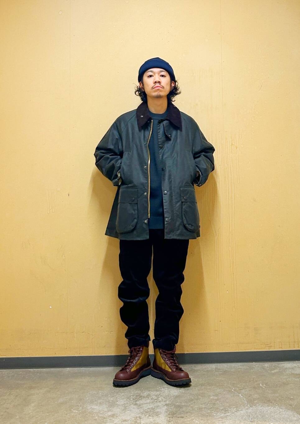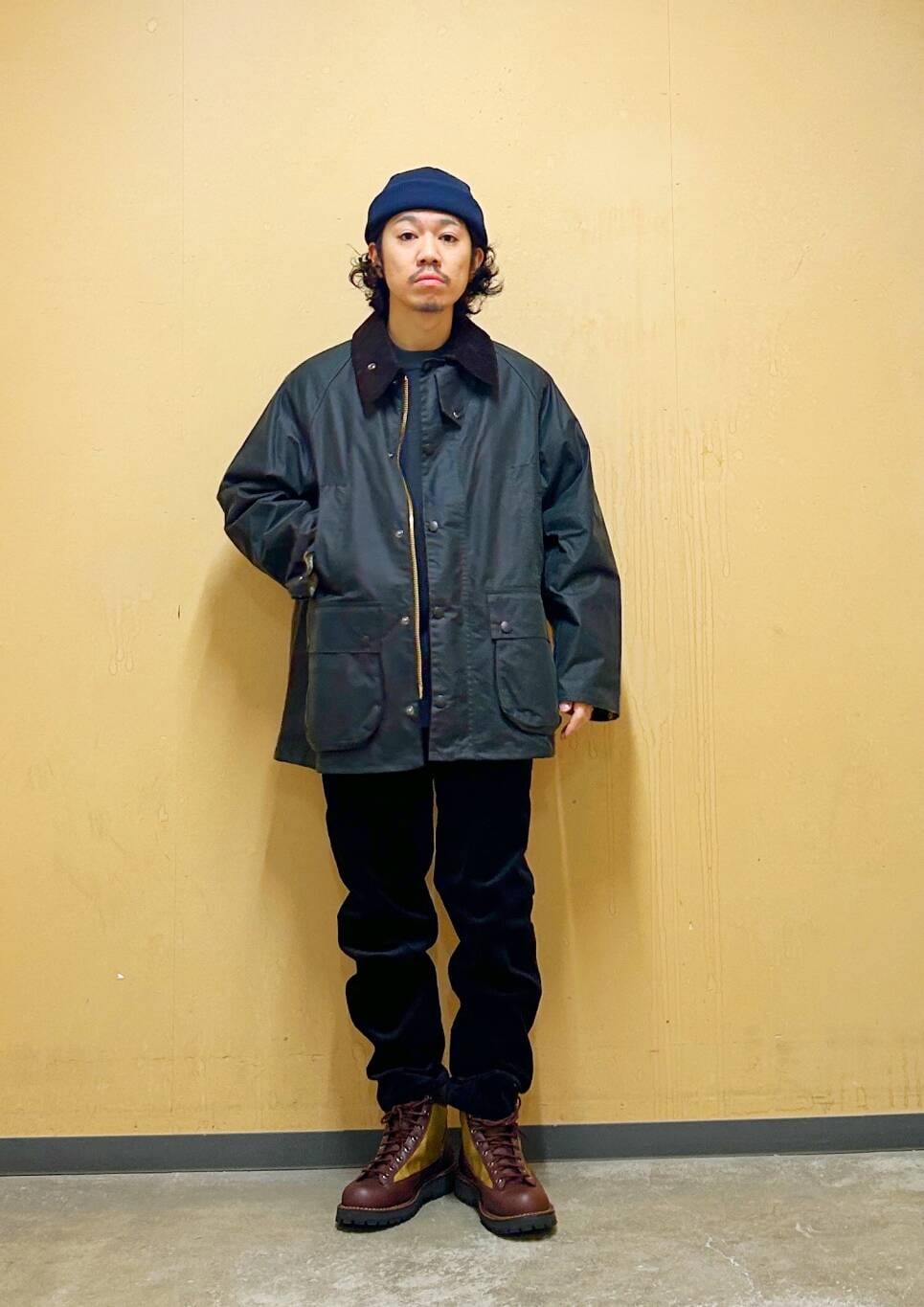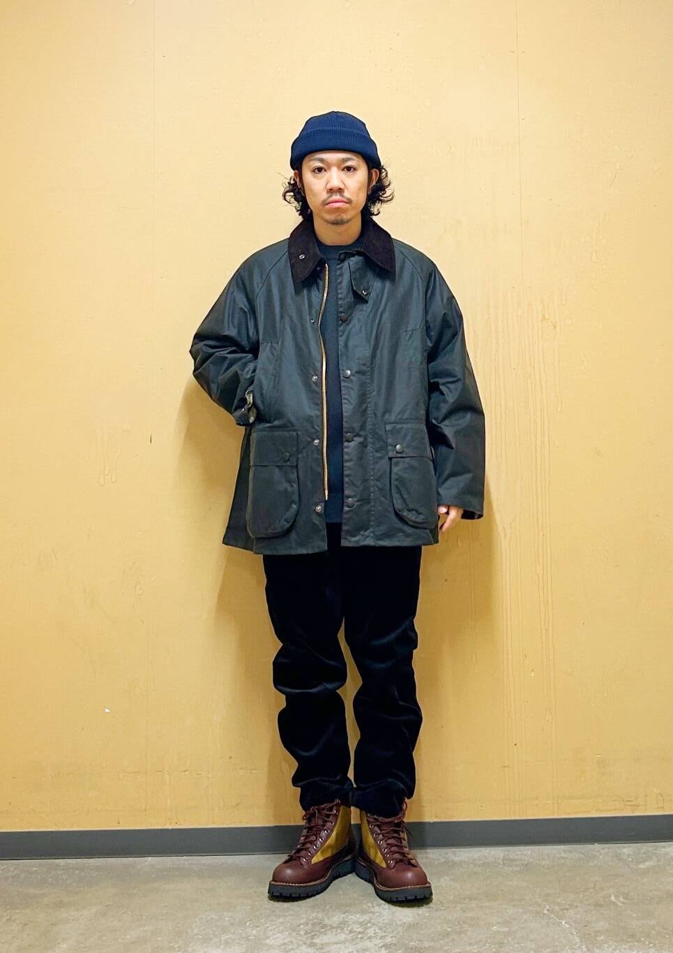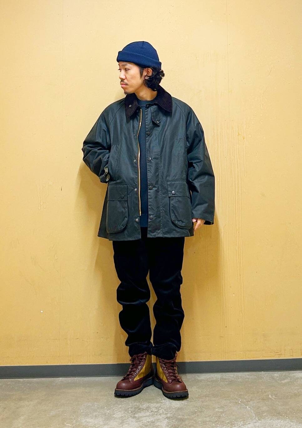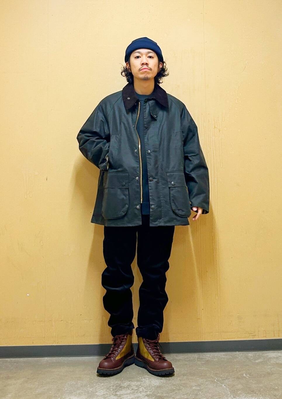 今回はBarbour OS WAX BEDALEとグラミチ別注コーデュロイトラウザーを使用したコーディネート。