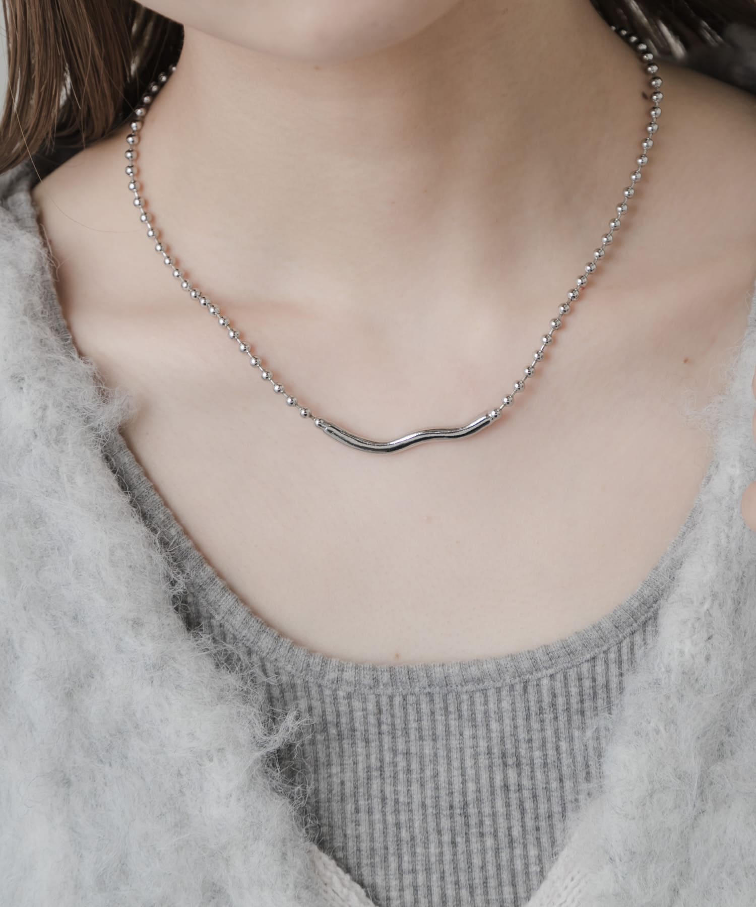 メタルニュアンスカーブボールネックレス