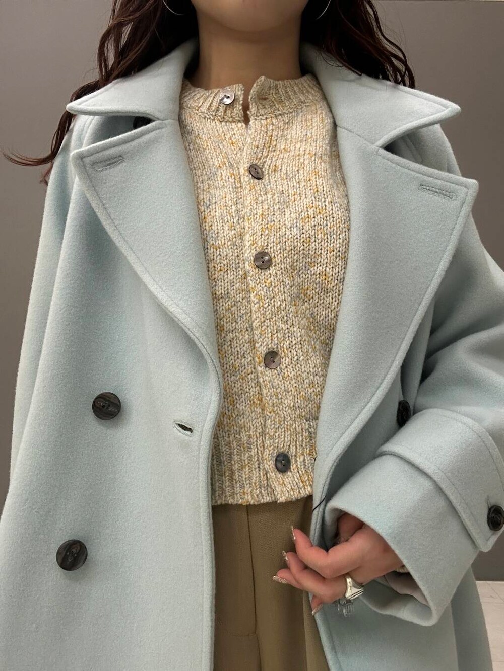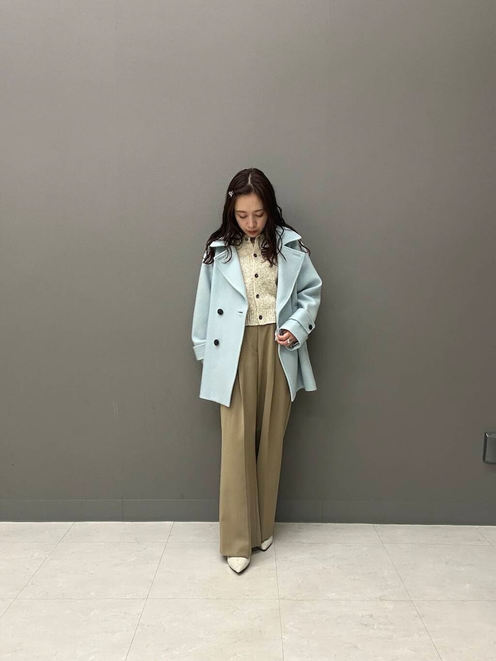 ハードルが高い色物アウターですが、トレンドすぎないシルエットとどんなカラーとも合わせやすい色味の水色で挑戦しやすいです◎