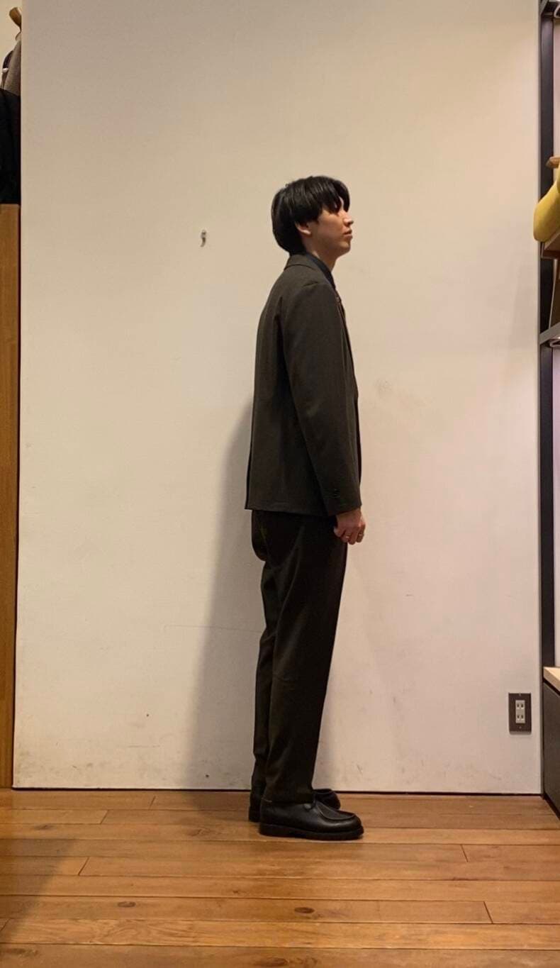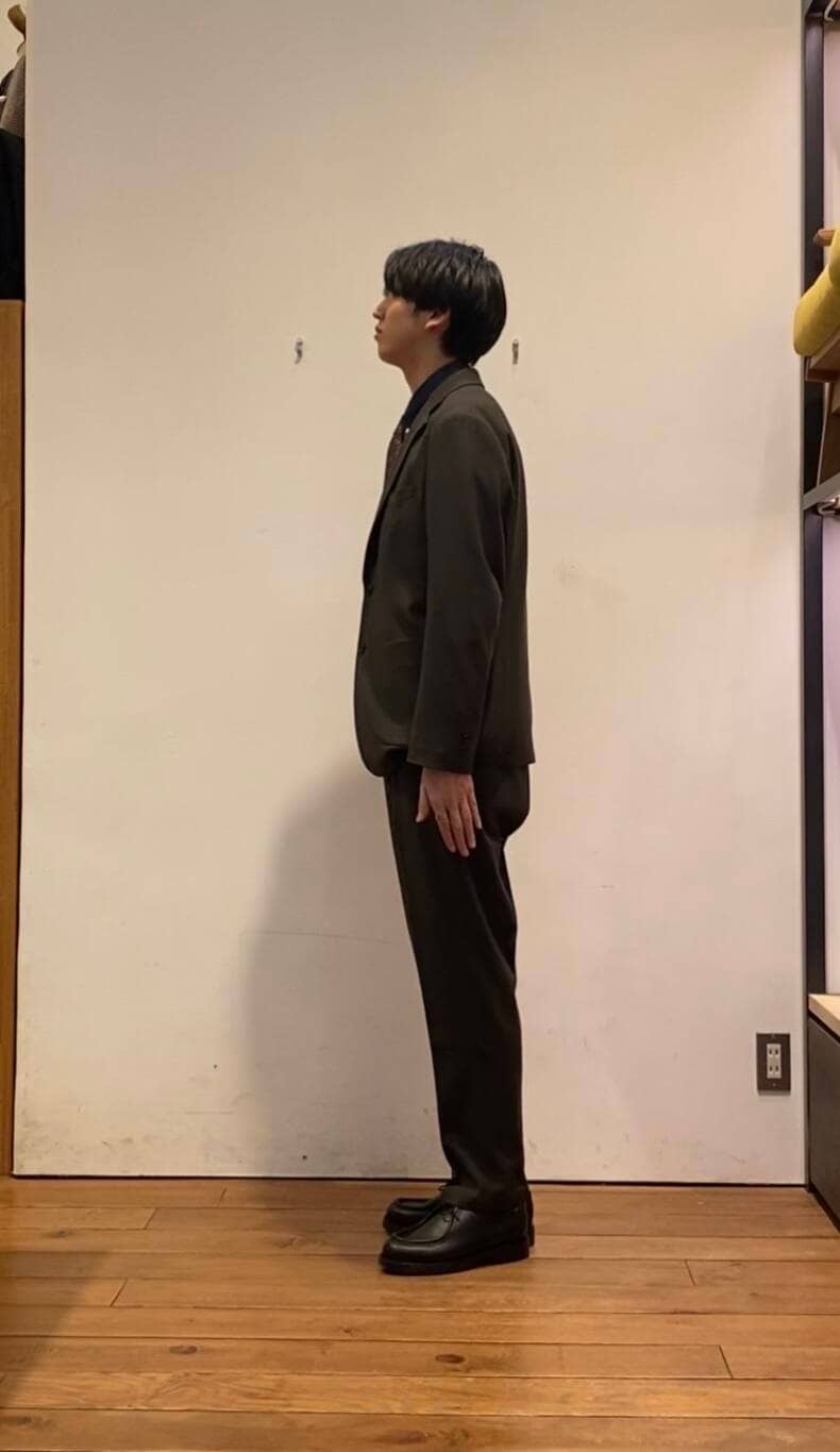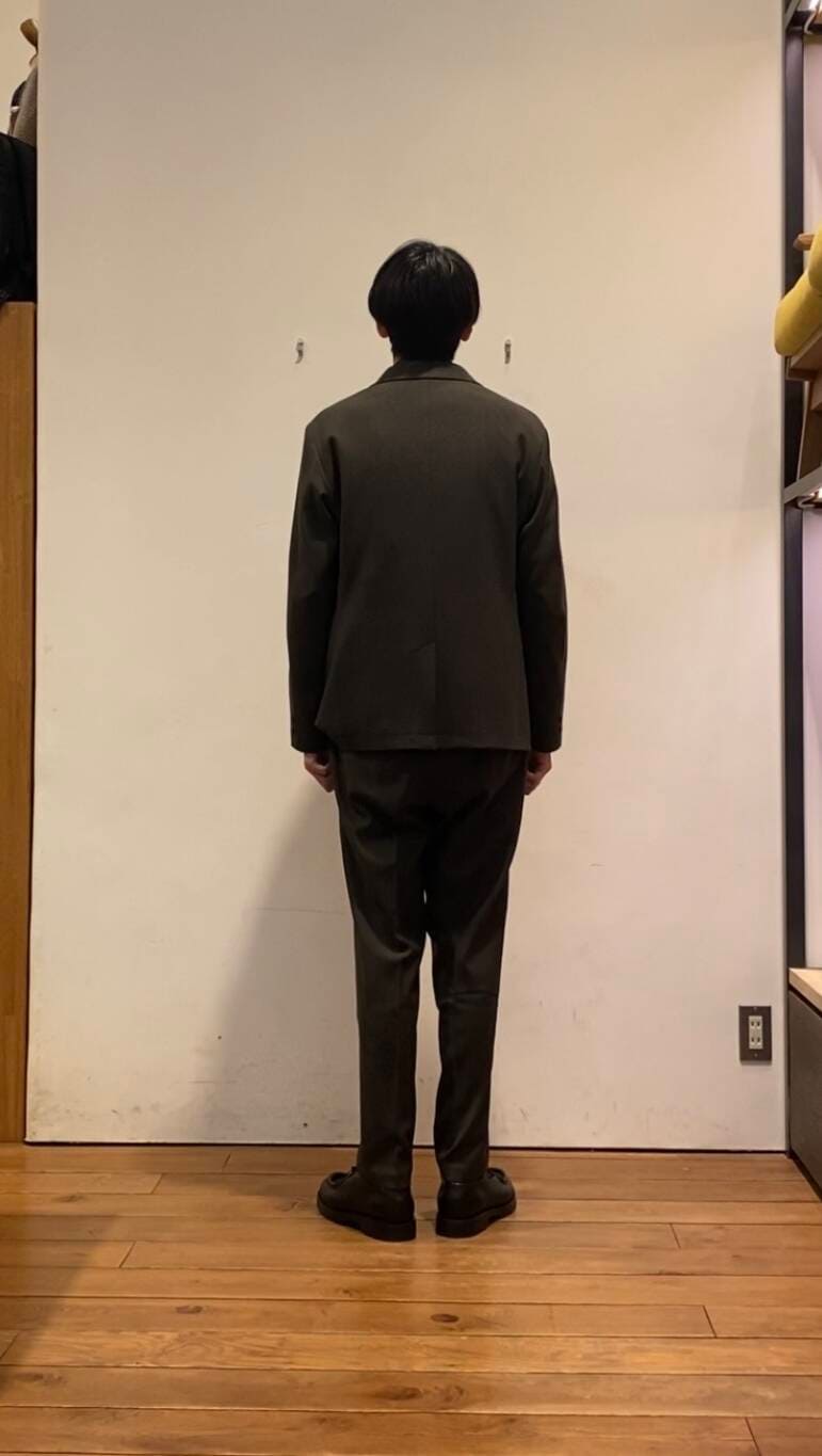 ジャケットとパンツは同素材となっており、ウォーム感のあるウール調ポリエステルを使用しております!