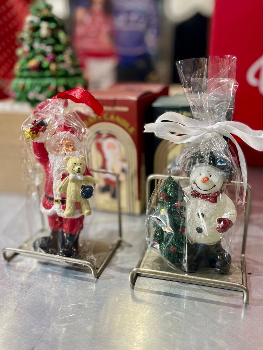 そのまま飾っておきたくなる、サンタやスノーマンモチーフのキャンドル。