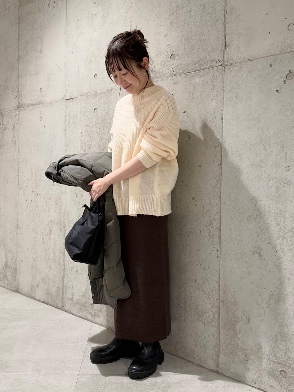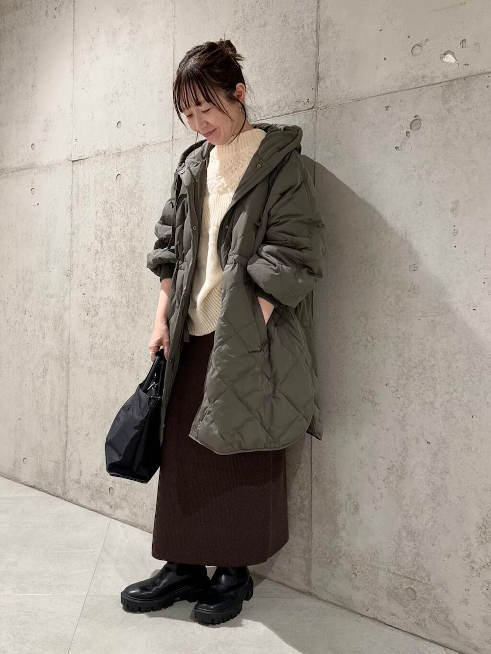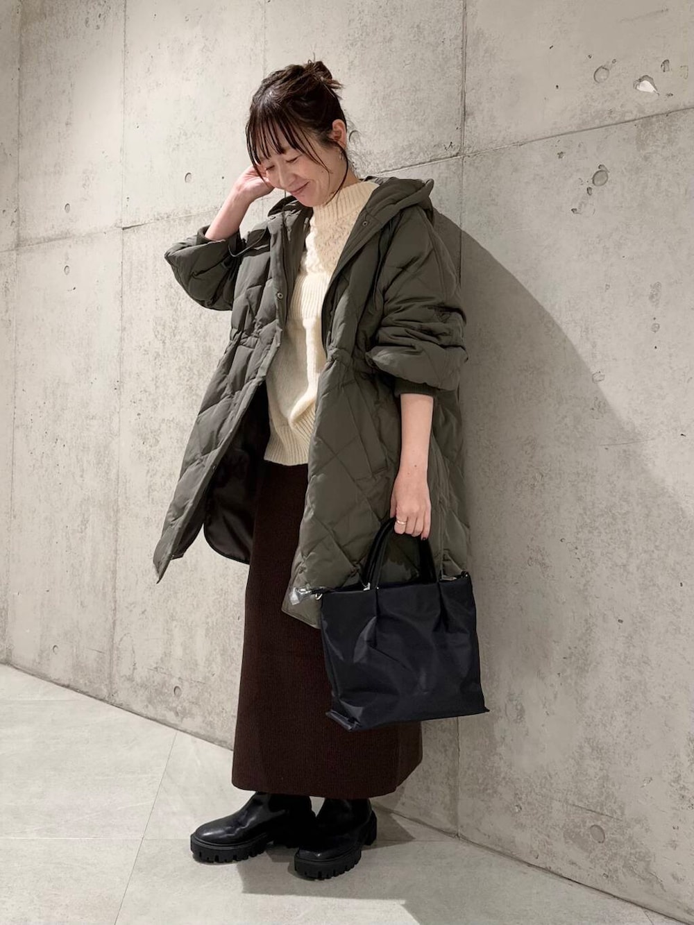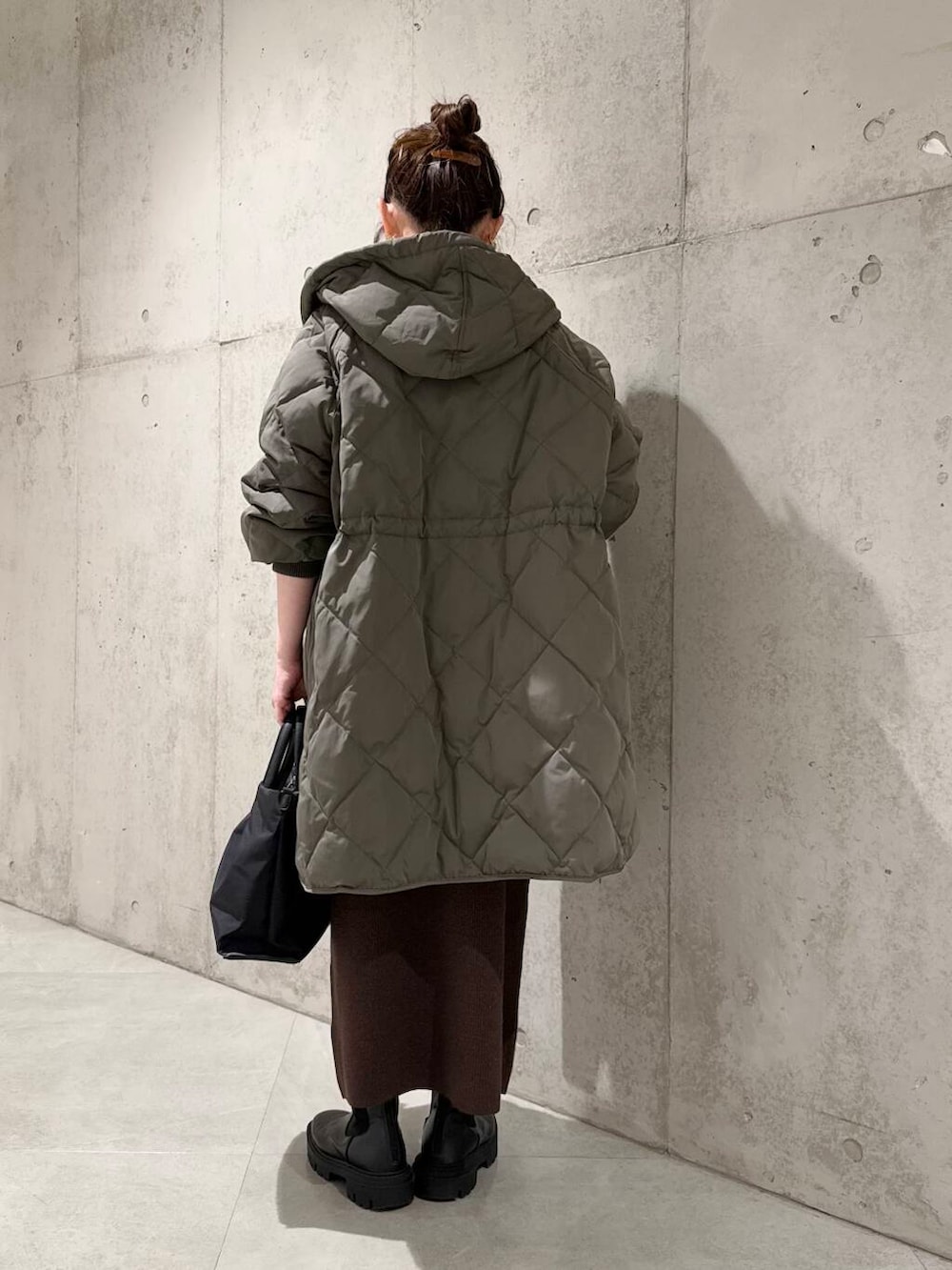 ボリュームのあるアウターなので、スッキリとしたボトムスがおすすめです。