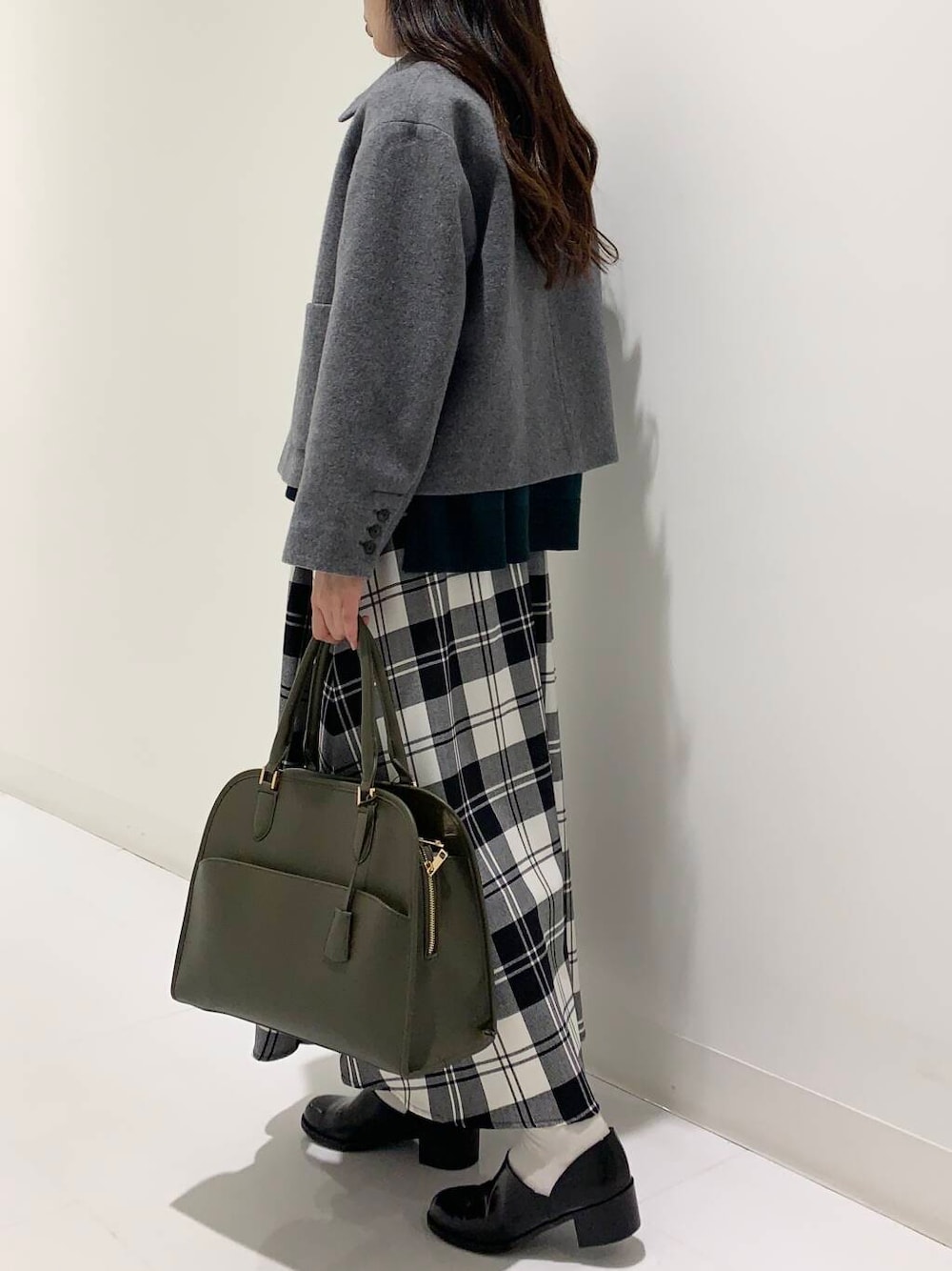 しっかりと大きめのボストンバッグはオフィススタイルにも合わせやすいです。