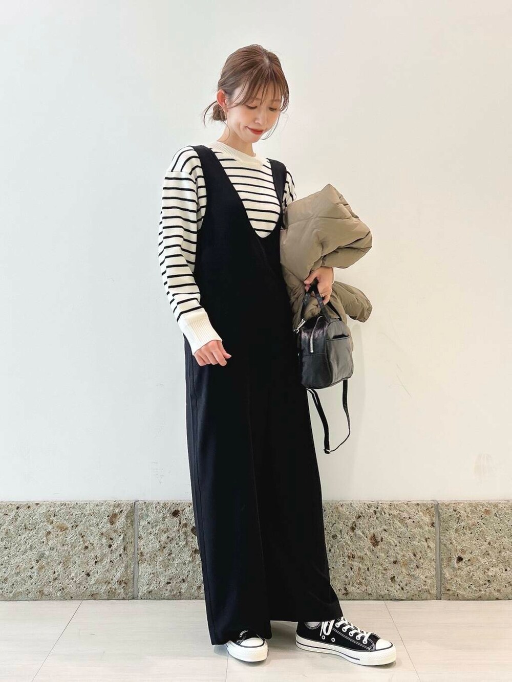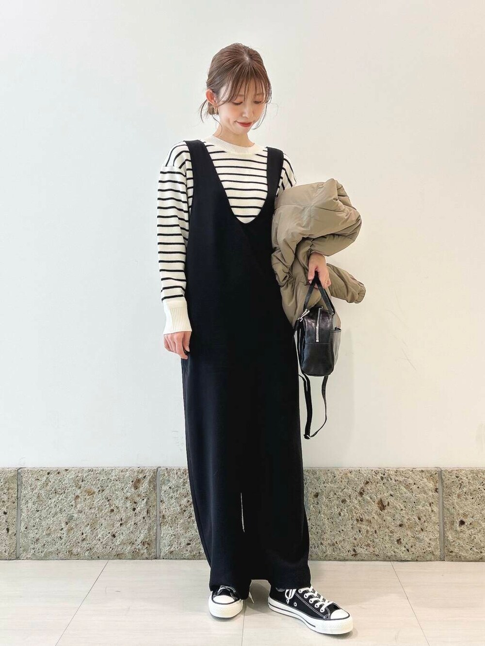 今回はボーダーニットとスニーカーと合わせて