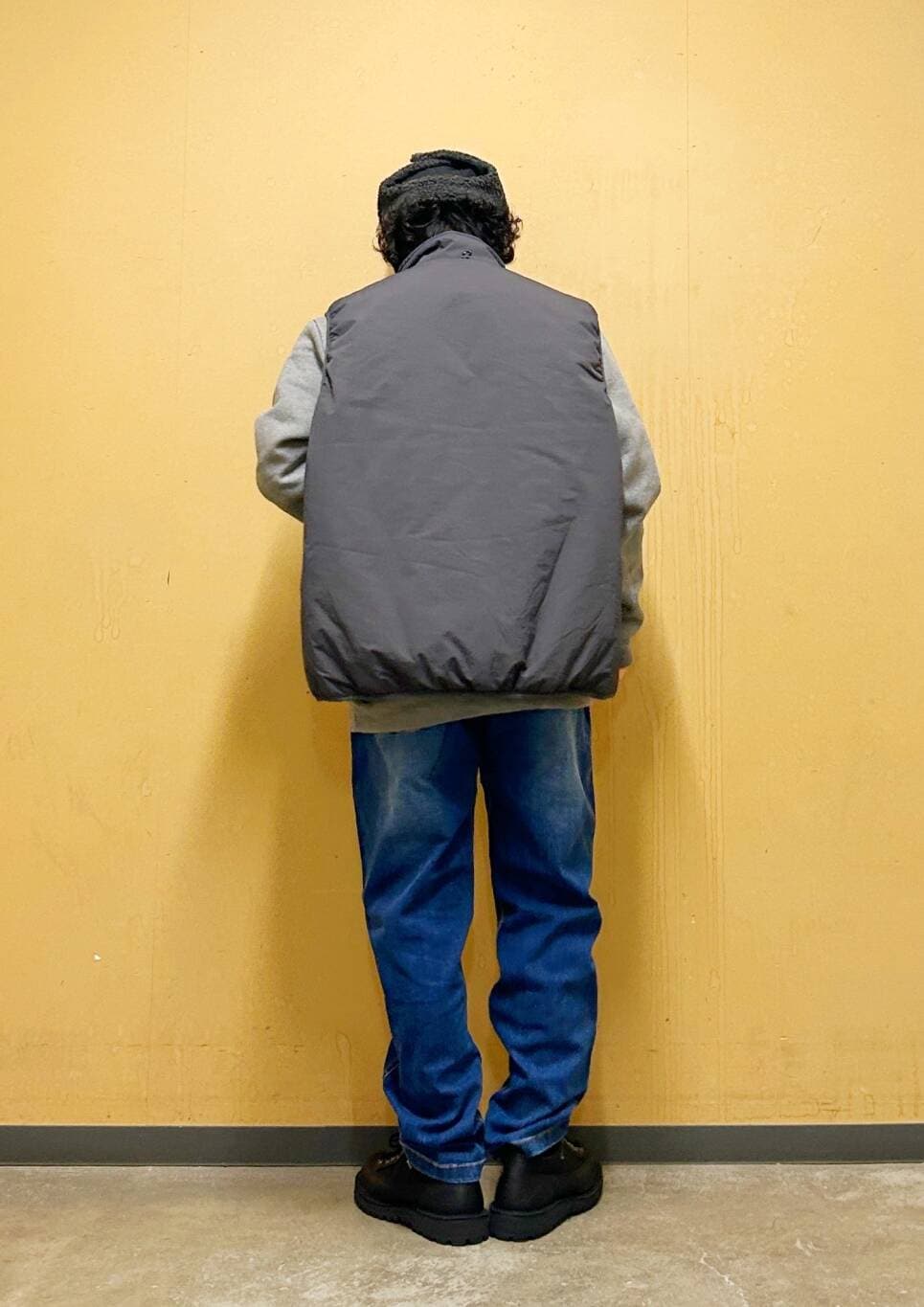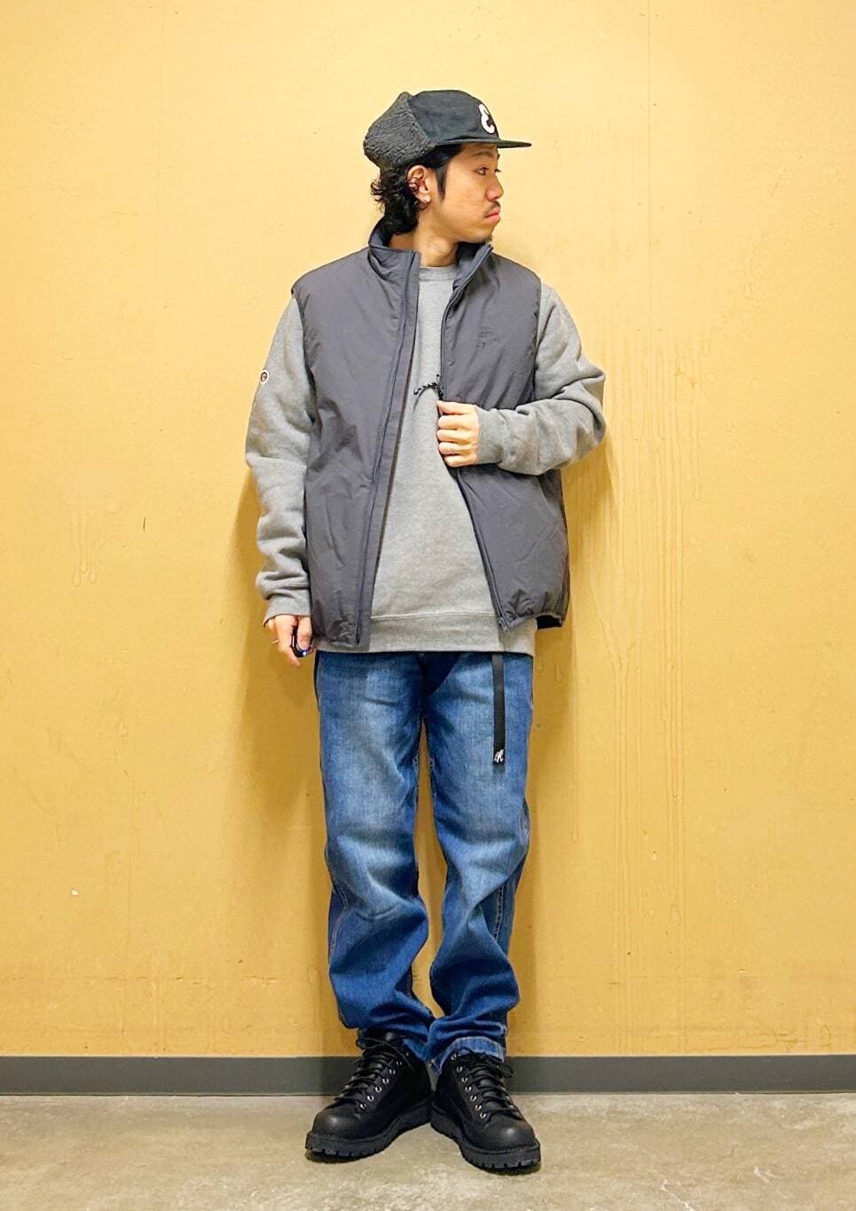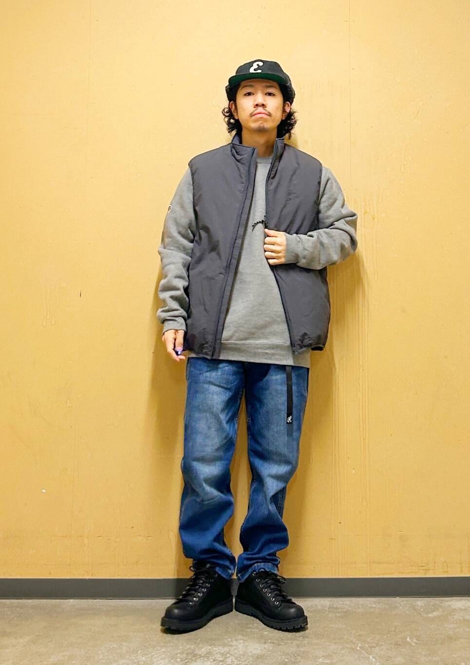 今回はurdベストとグラミチ別注デニムパンツを使用したコーディネート。