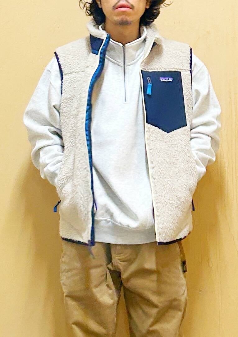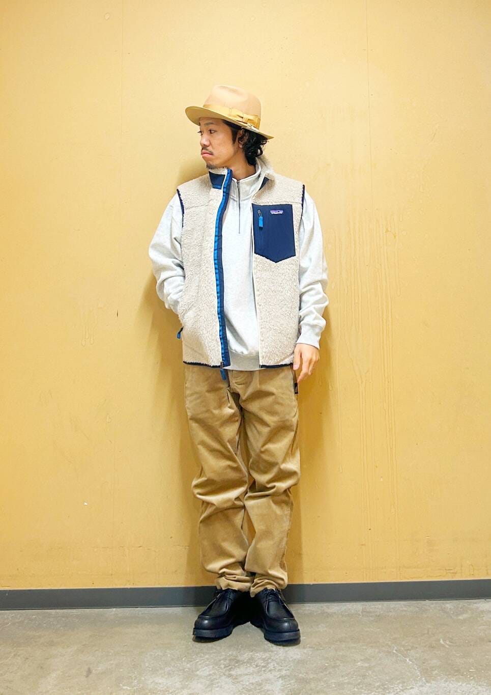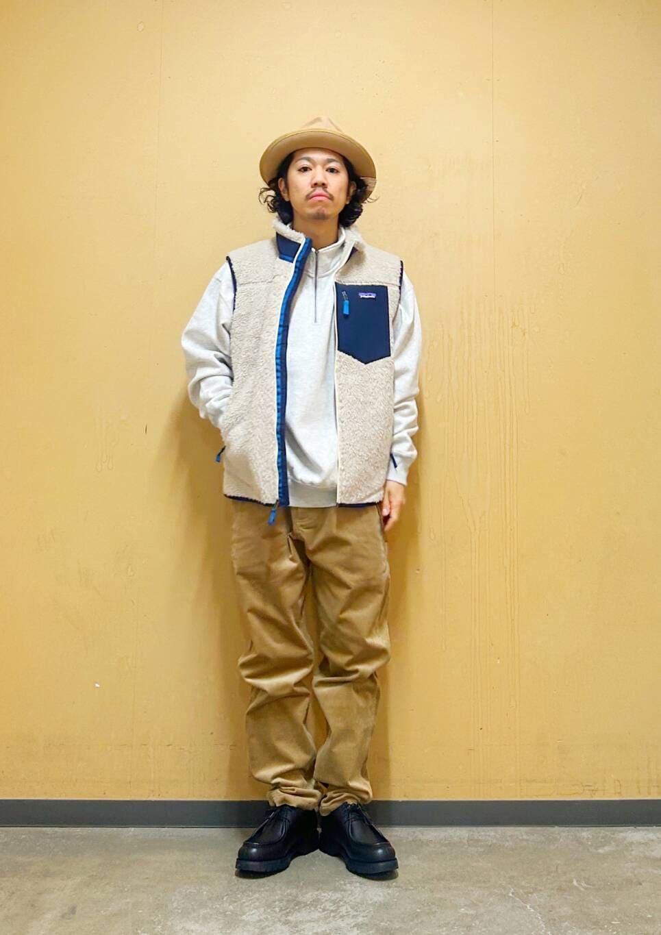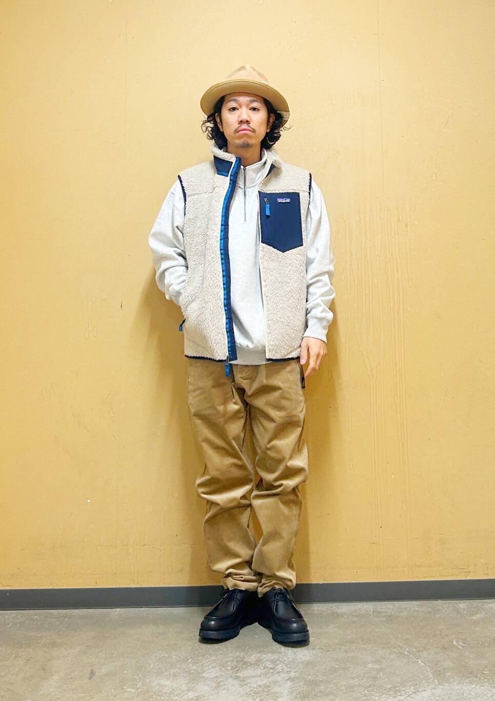 今回はPatagoniaボアベストとコーデュロイトラウザーを使用したコーディネート。
