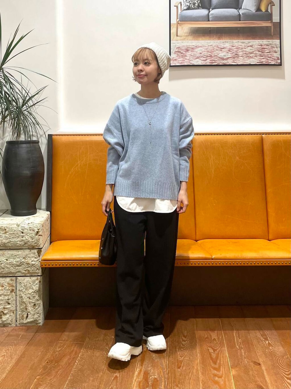 ボトムスは程よくゆとりがありますがスッキリした印象で履いて頂けます。その為、ボリュームのあるトップスやアウター合わせもしやすいです!