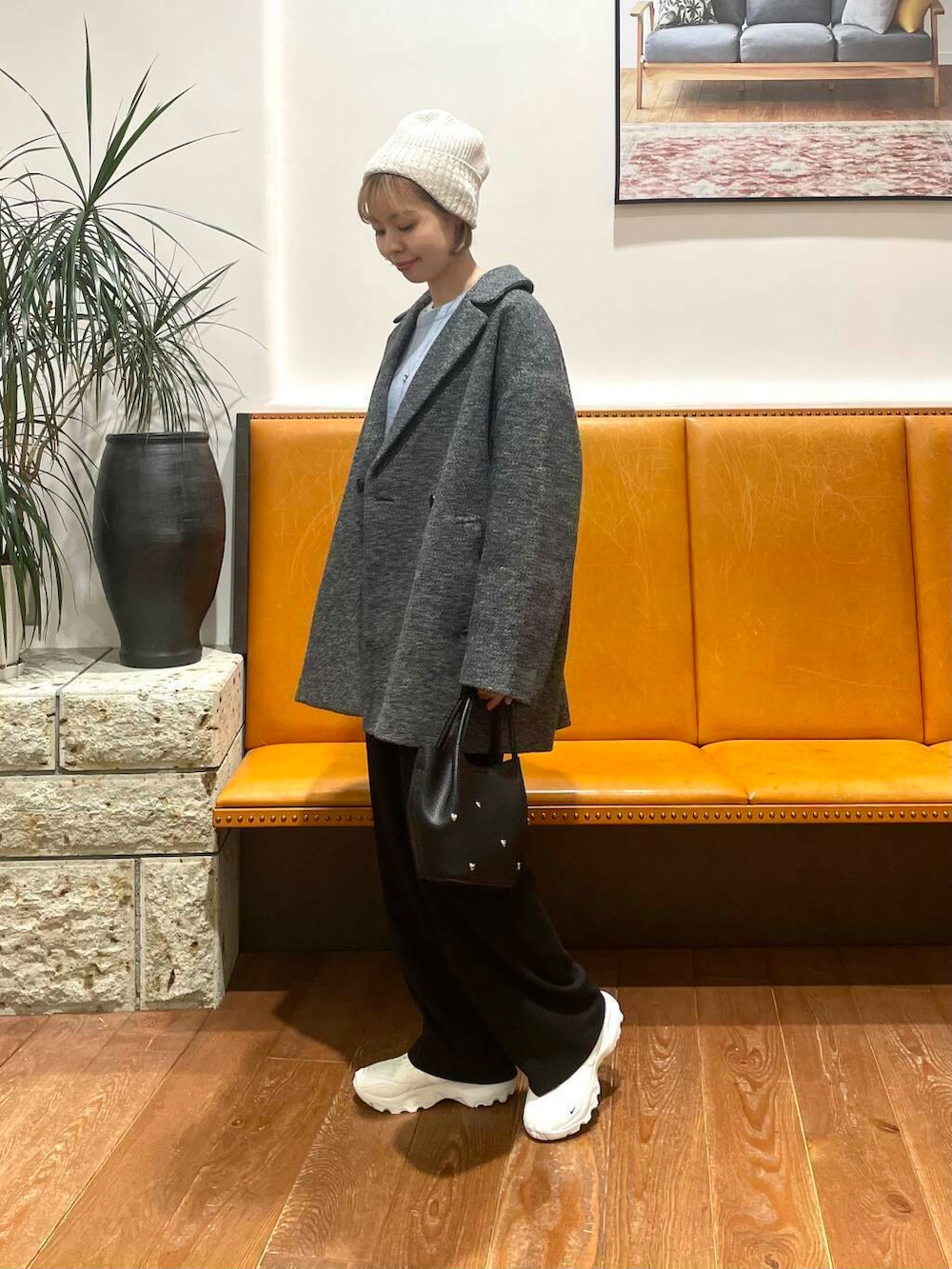 コートはゆったりとしたシルエットで中に厚手のものも合わせて頂けます◎