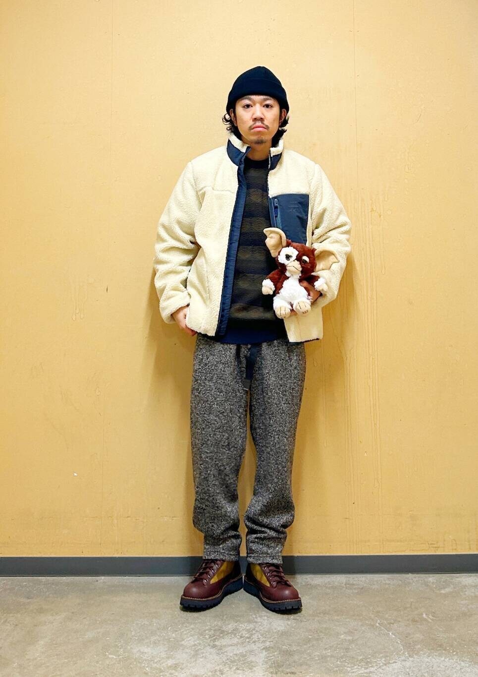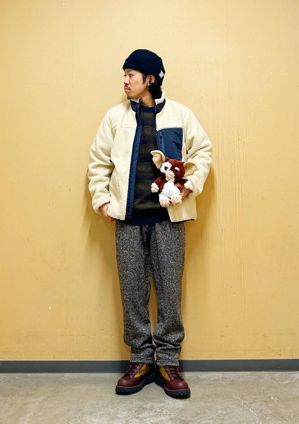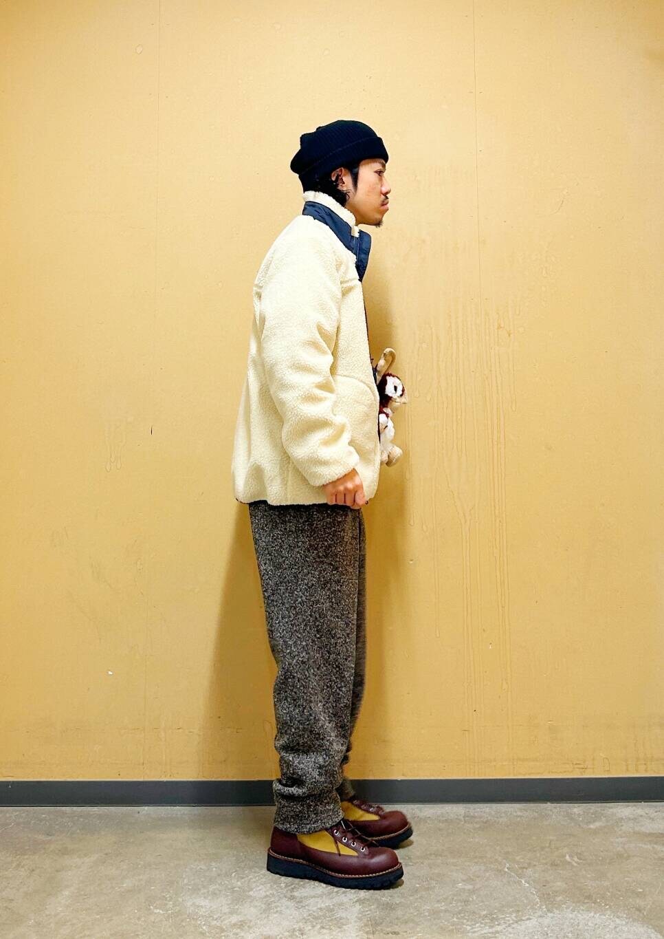 今回はurdボアブルゾンとニットパンツを使用したコーディネート。