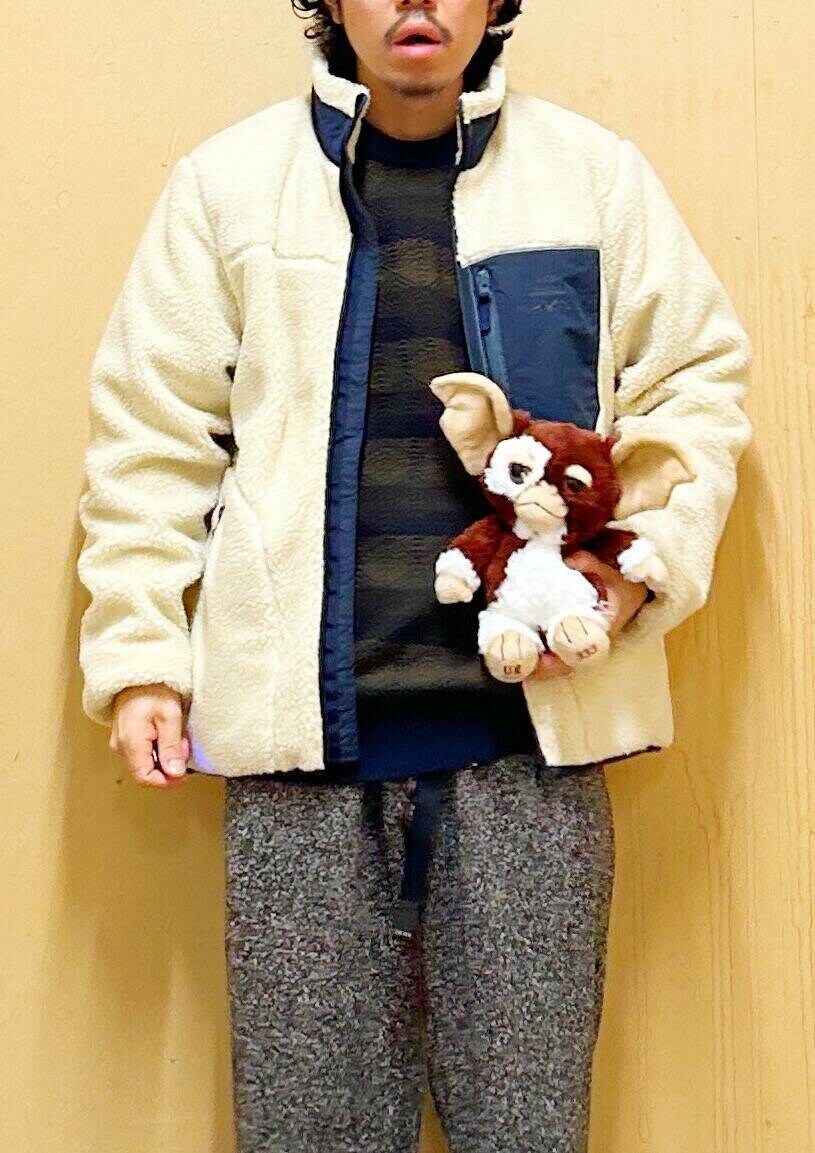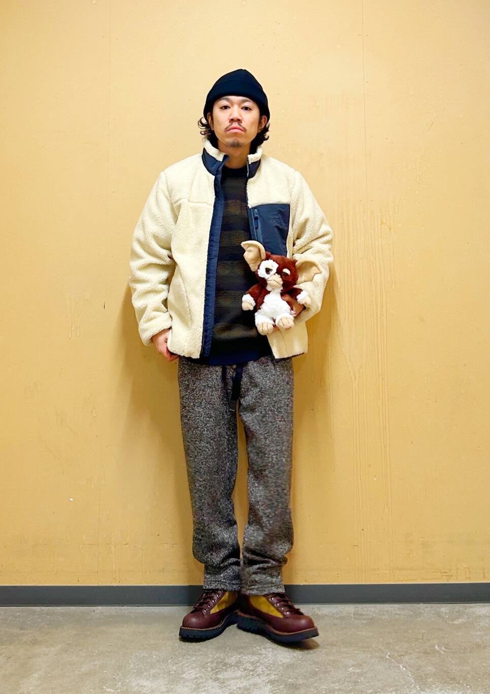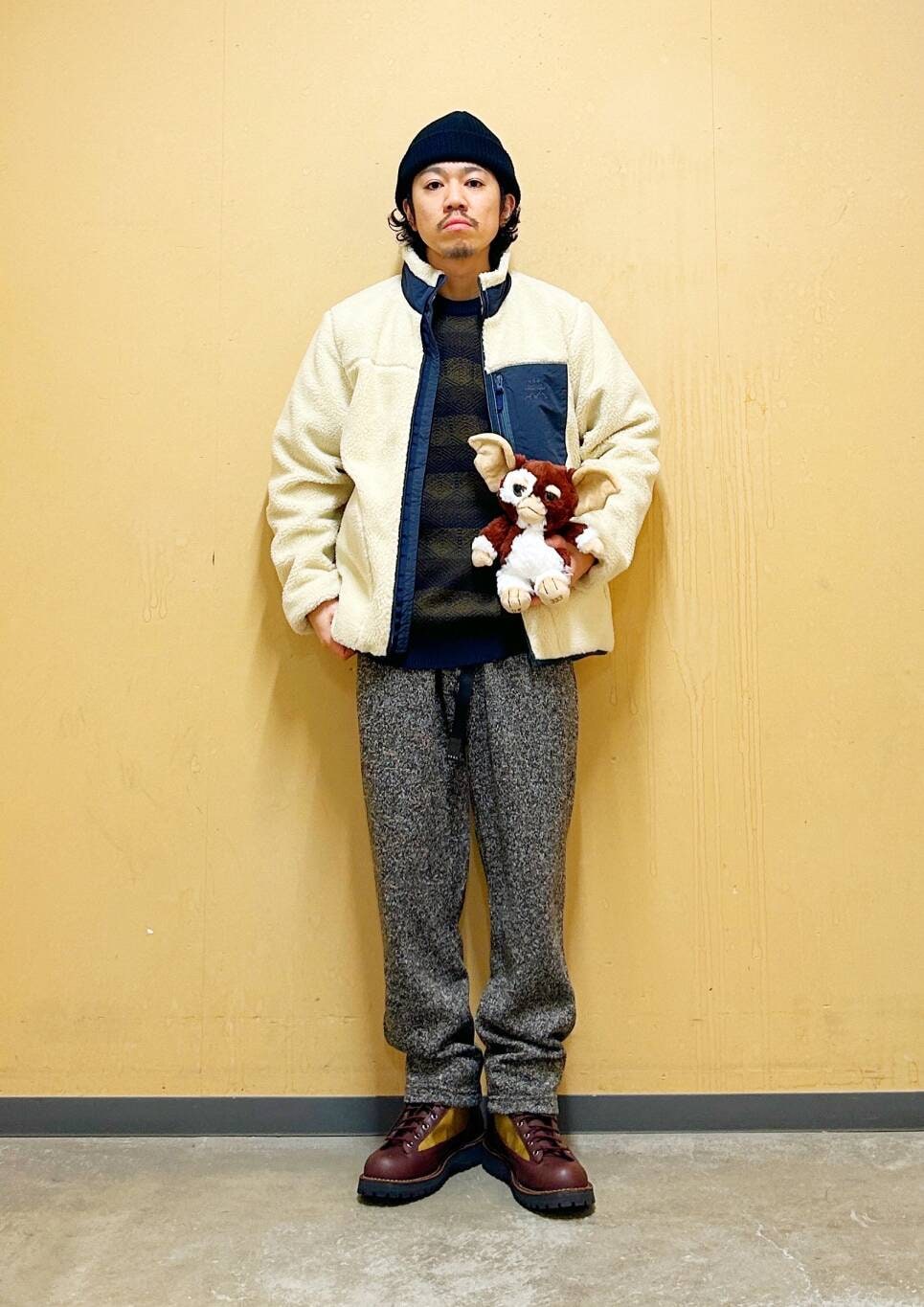 今回はurdボアブルゾンとニットパンツを使用したコーディネート。