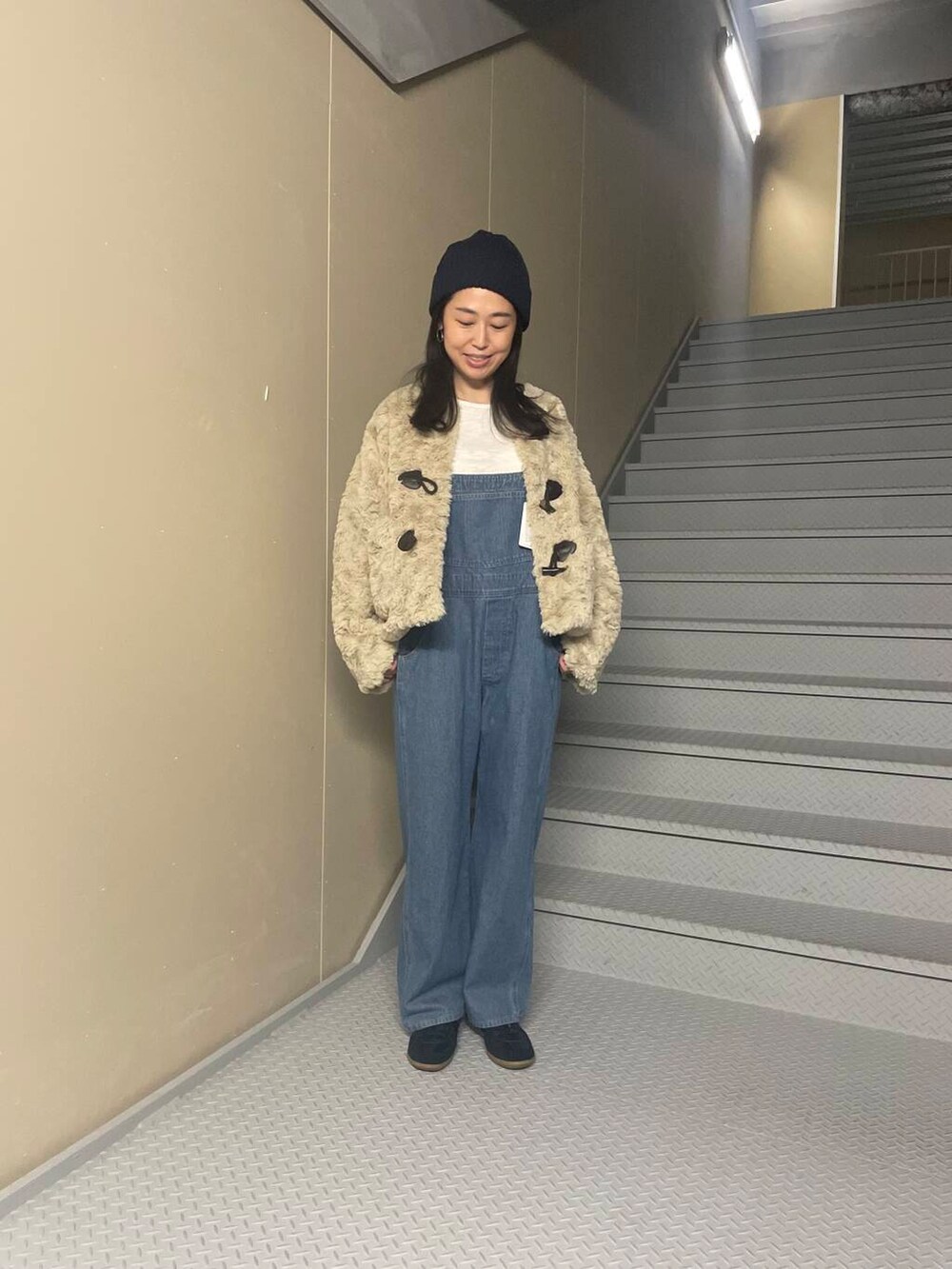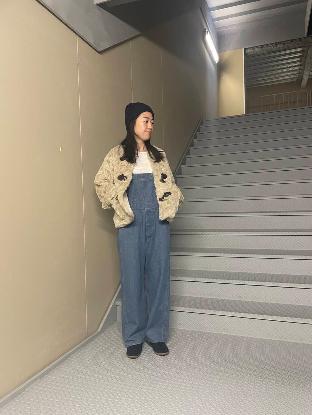 サロペットは少しタイトで細身なので厚手のインナーは割とボリューム感あったので薄手のインナーをあわせました!