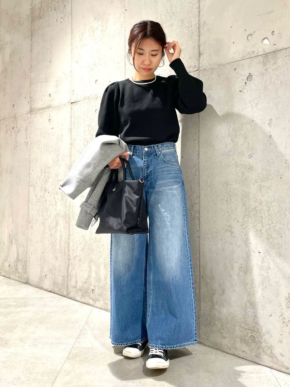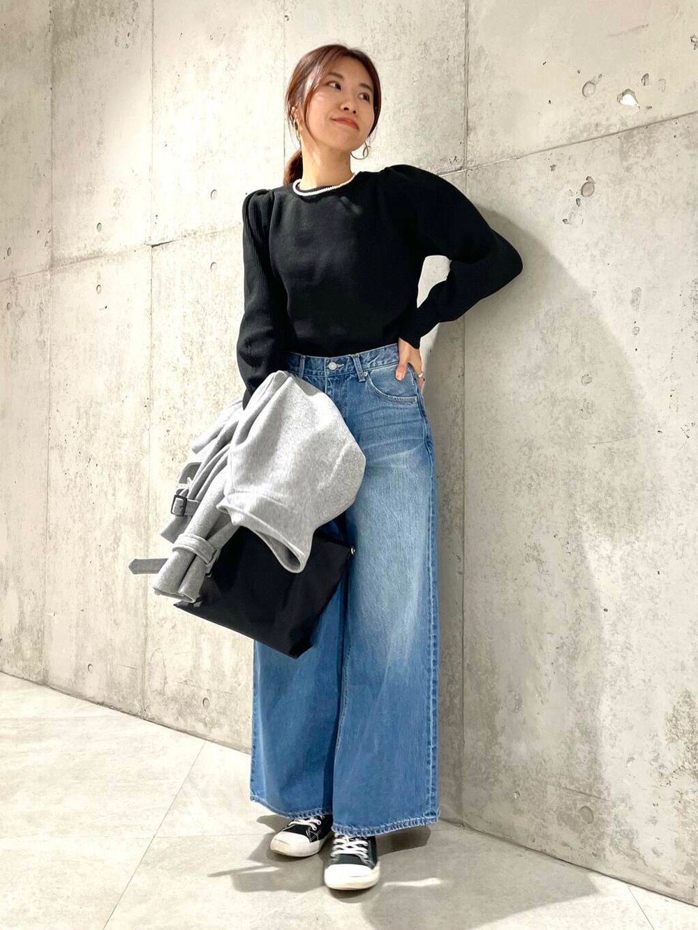 ニットは肩周りがパフっとしていてレディライクな印象ですね。