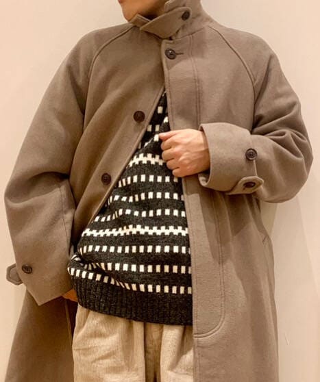 今回はウールメルトンステンカラーコートを使ったコーディネートです。