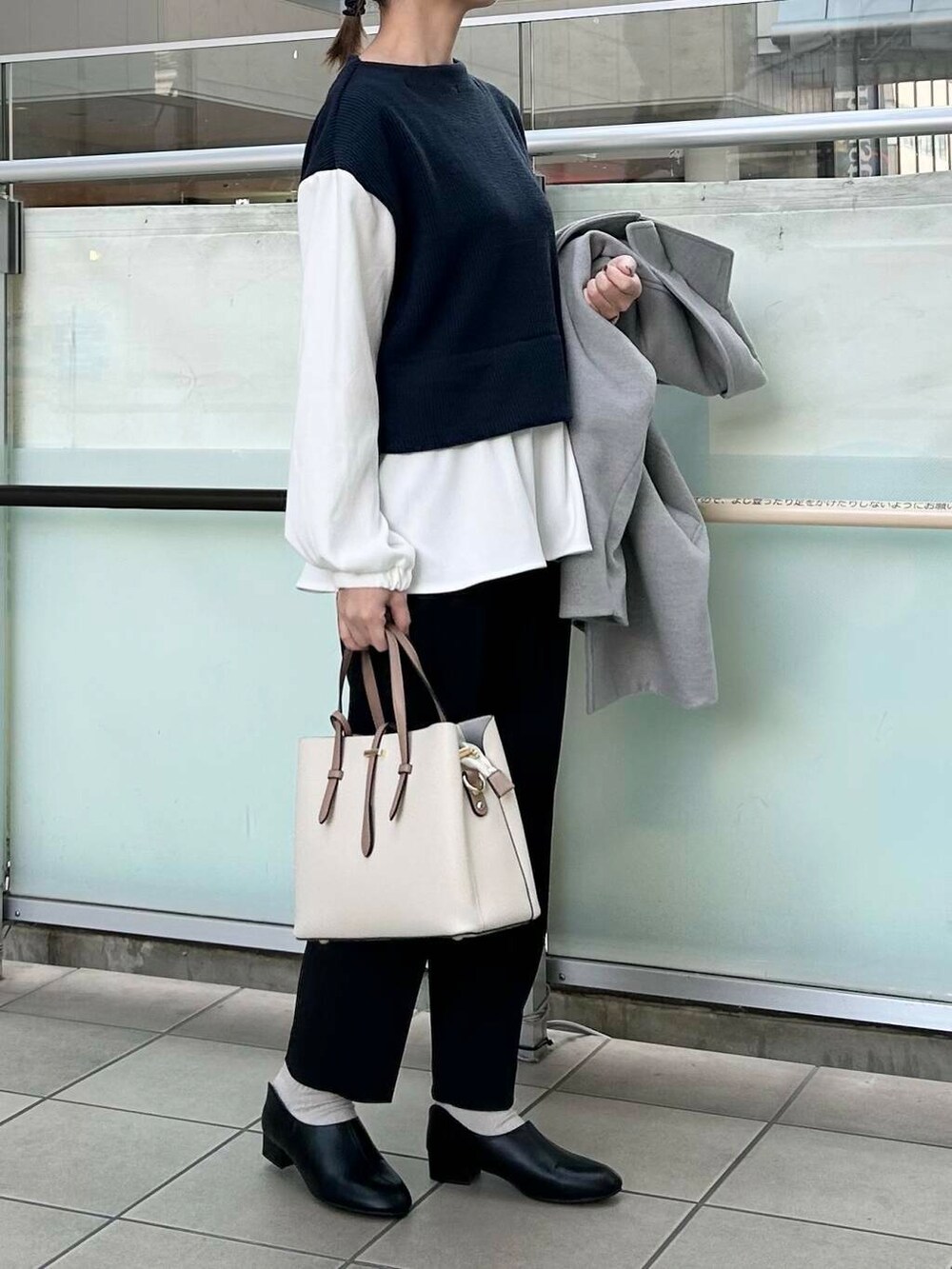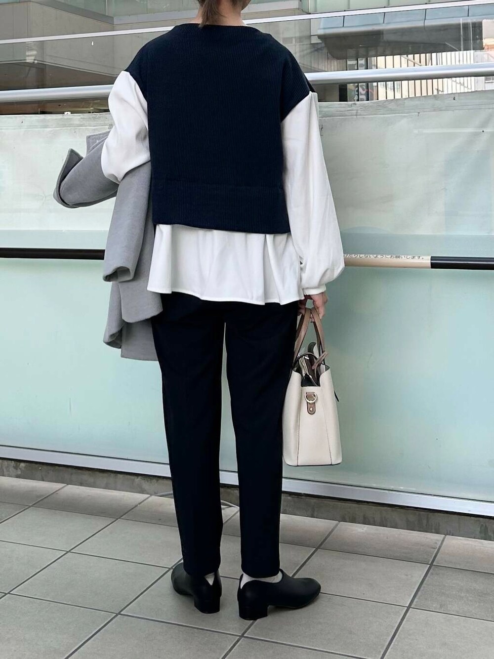 キレイ目にもカジュアルにも使える万能なトップスですが今回はお仕事をイメージしてキレイ目スタイルにしました。