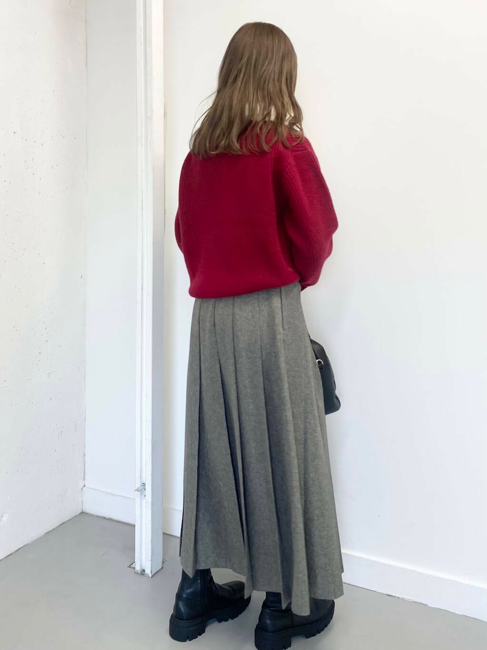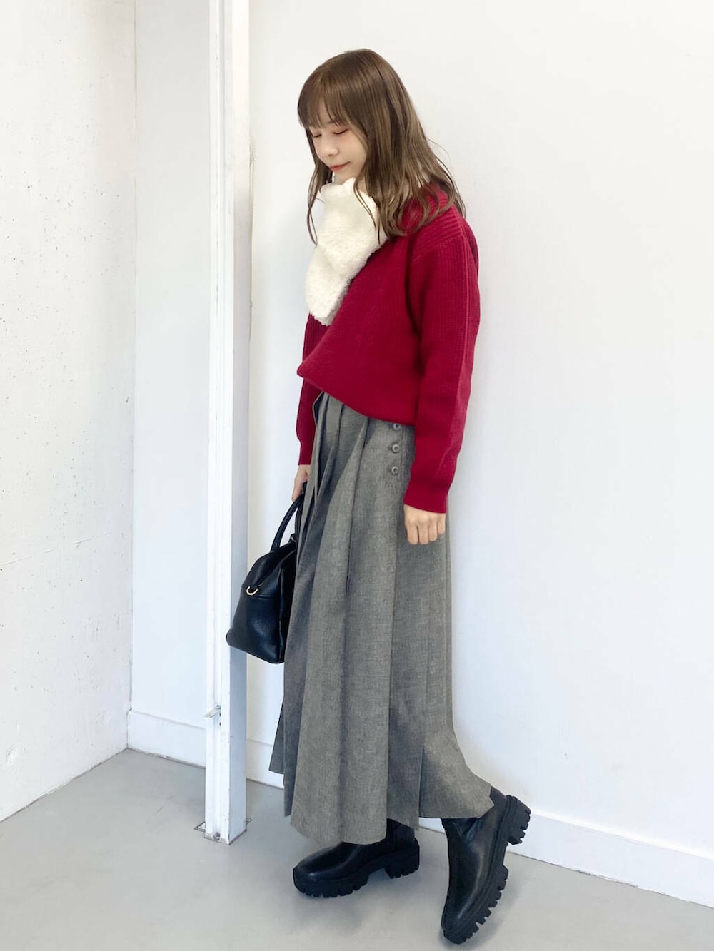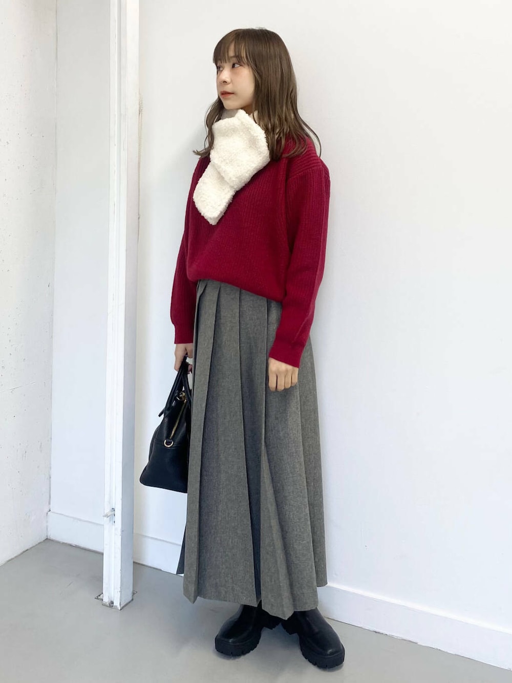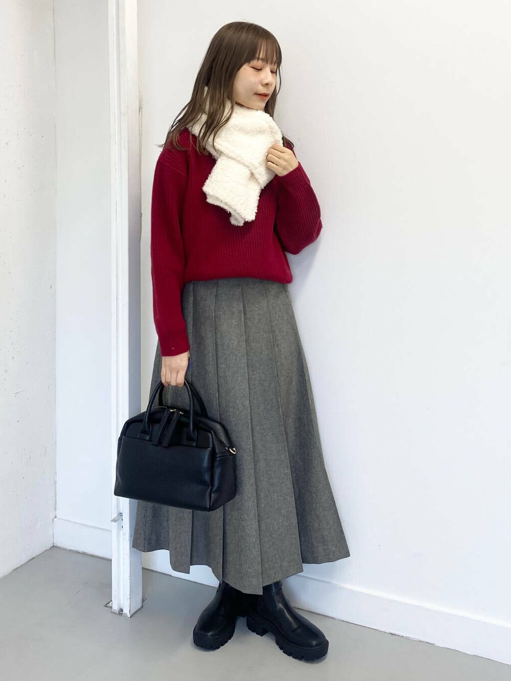 今回はプリーツスカートを合わせて落ち着いた雰囲気の
