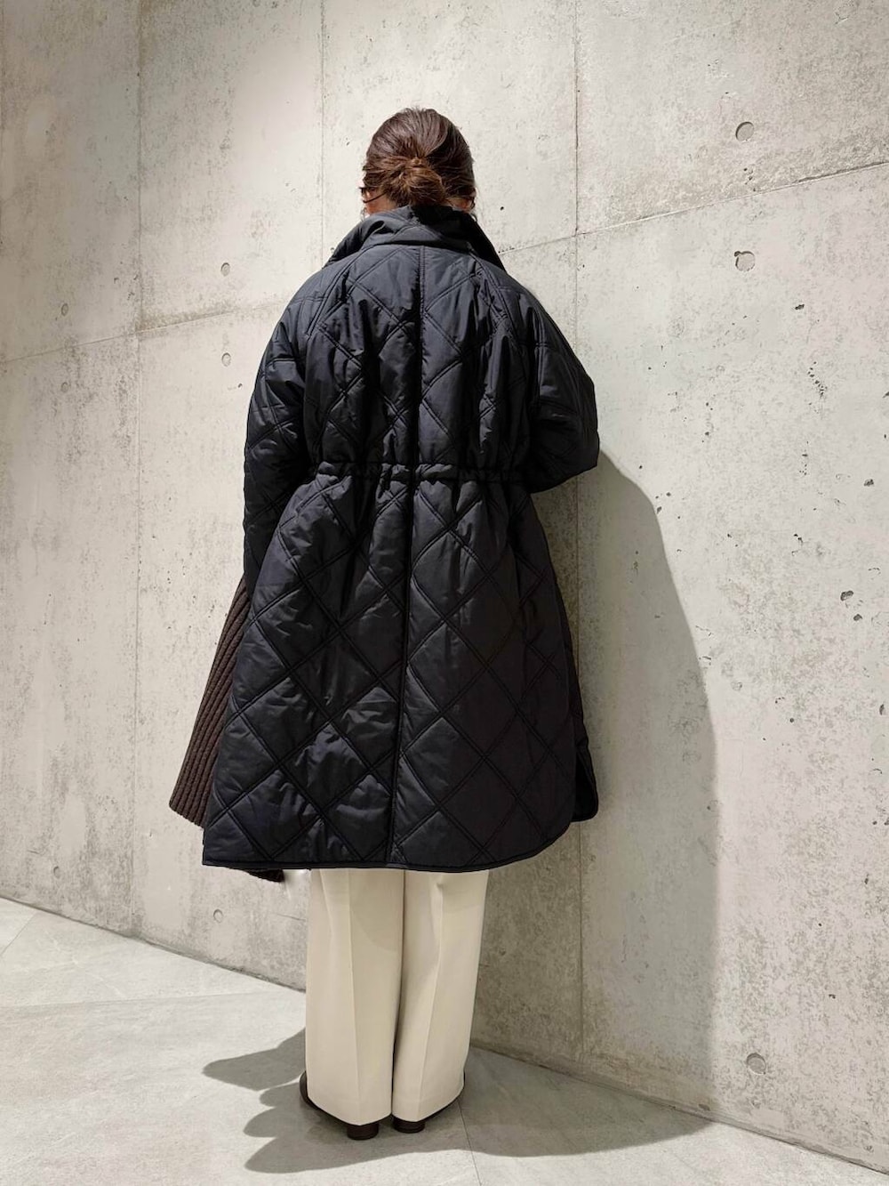 ウエストについているドロストコードをきゅっと絞ると、ふわっと広がるフレアシルエットになるデザイン。