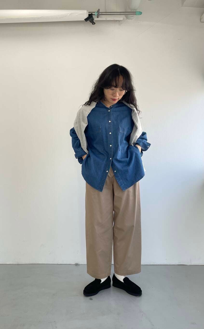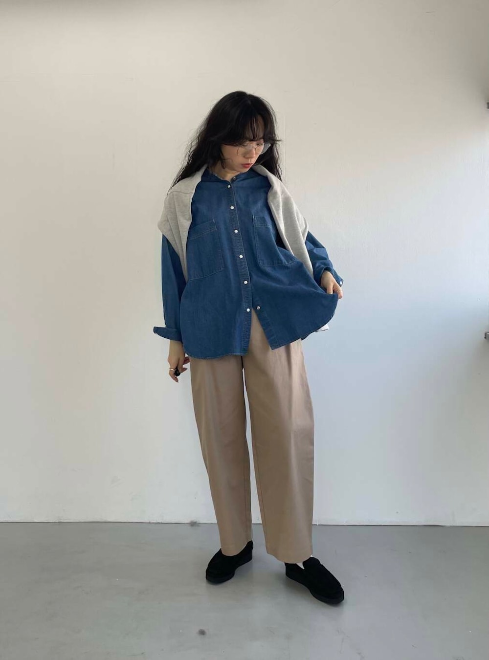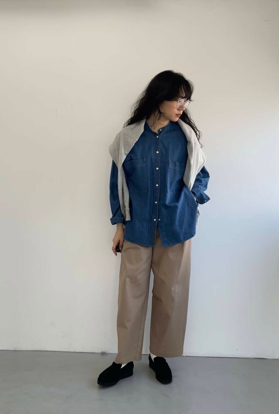 人気のデニムシャツをメインにメンズライクなルーズなコーディネートを組みました。