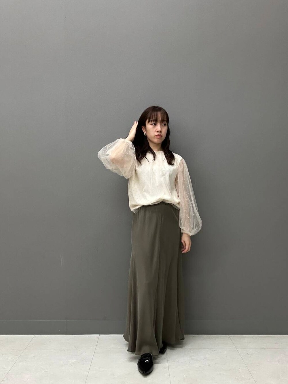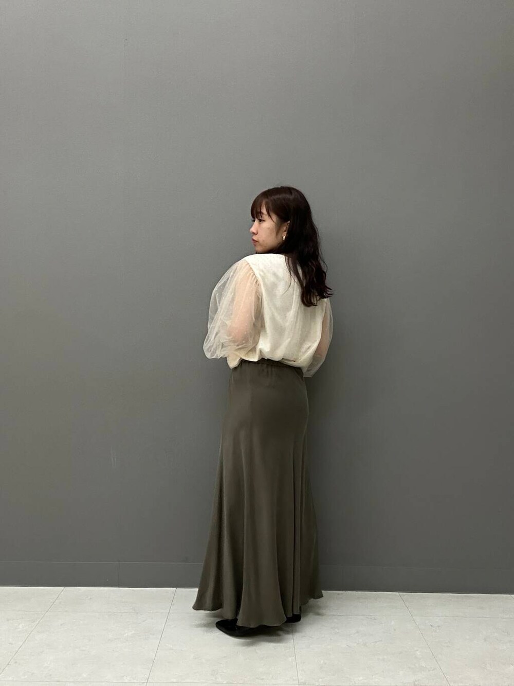 中に着たチュールブラウスは上品に女性らしく肌見せでき、パーティーや女子会、デートなどさまざまなシーンでコーデに華やかさが出るアイテムです◎