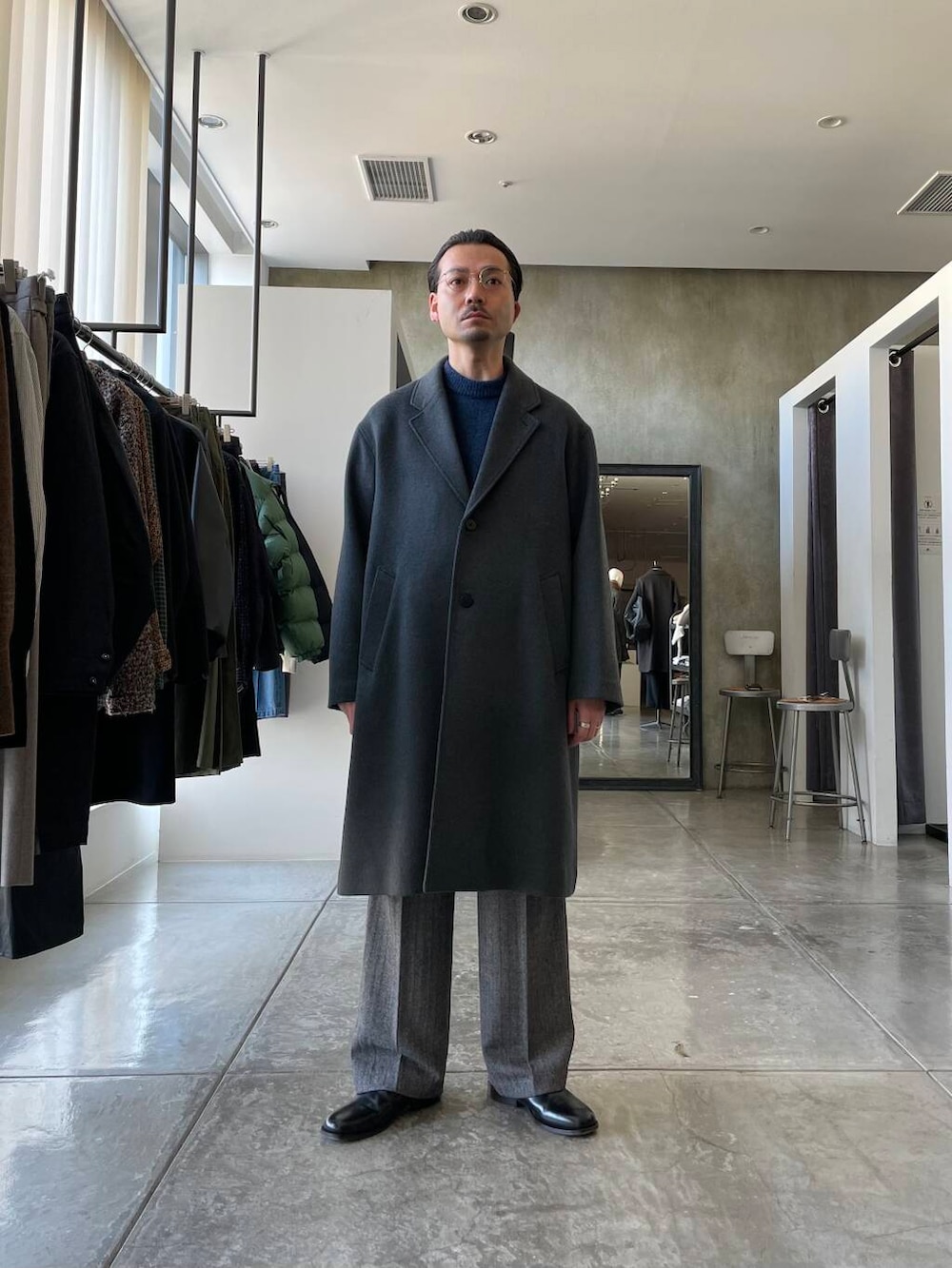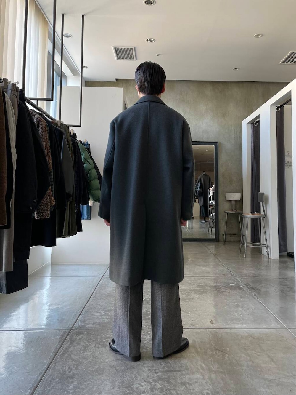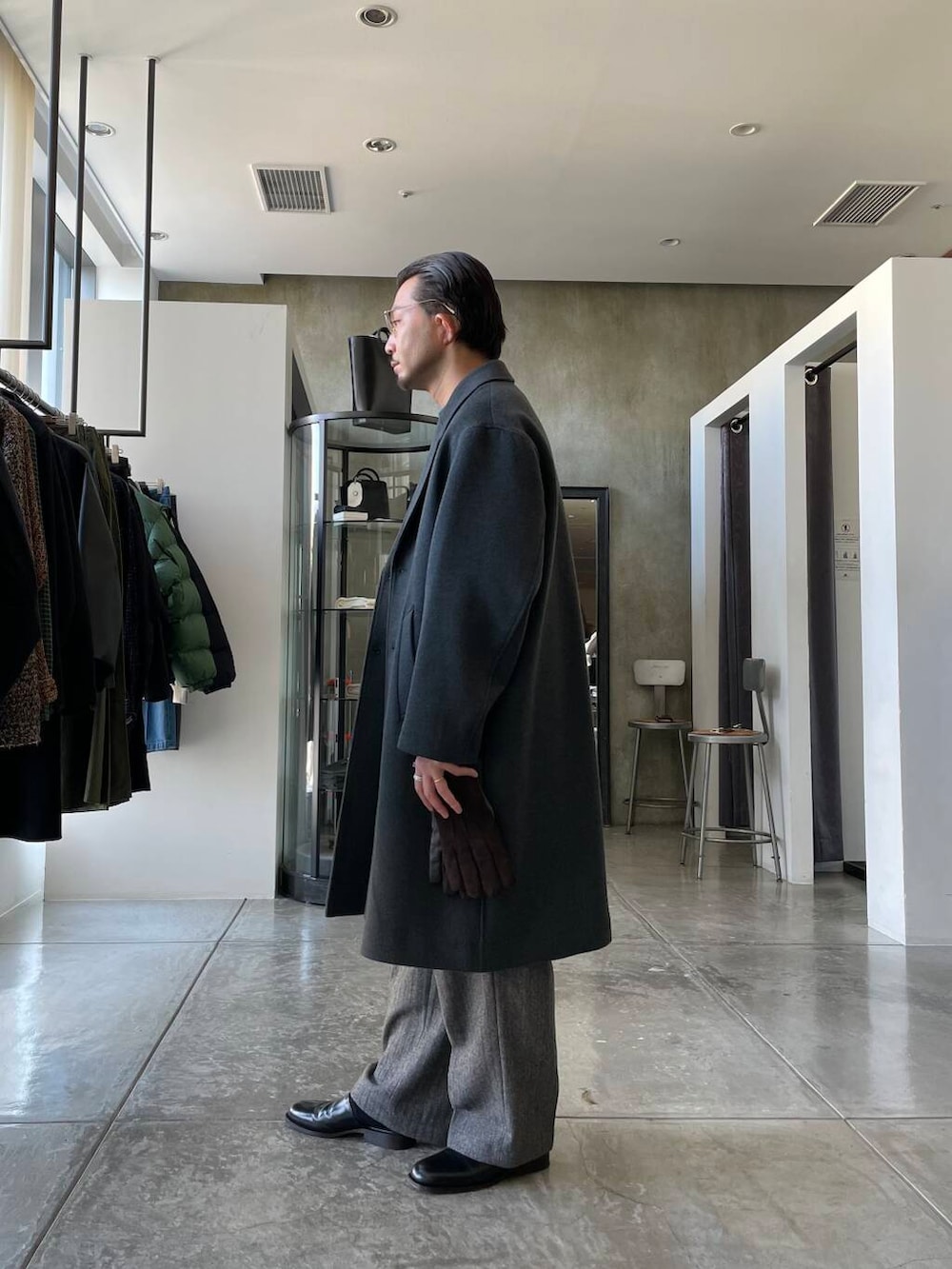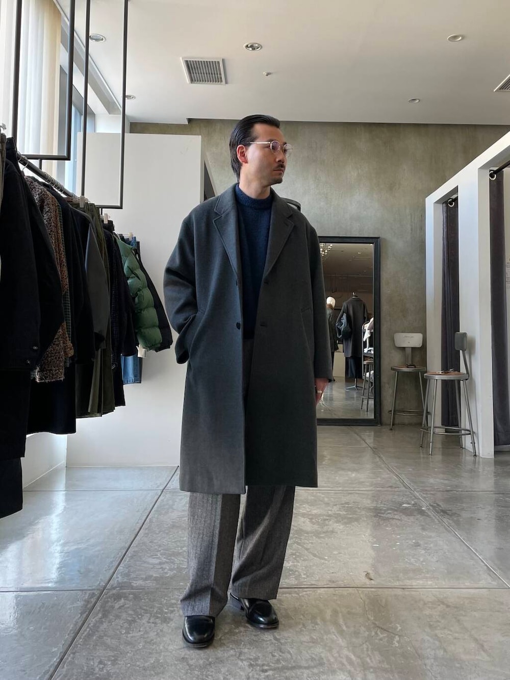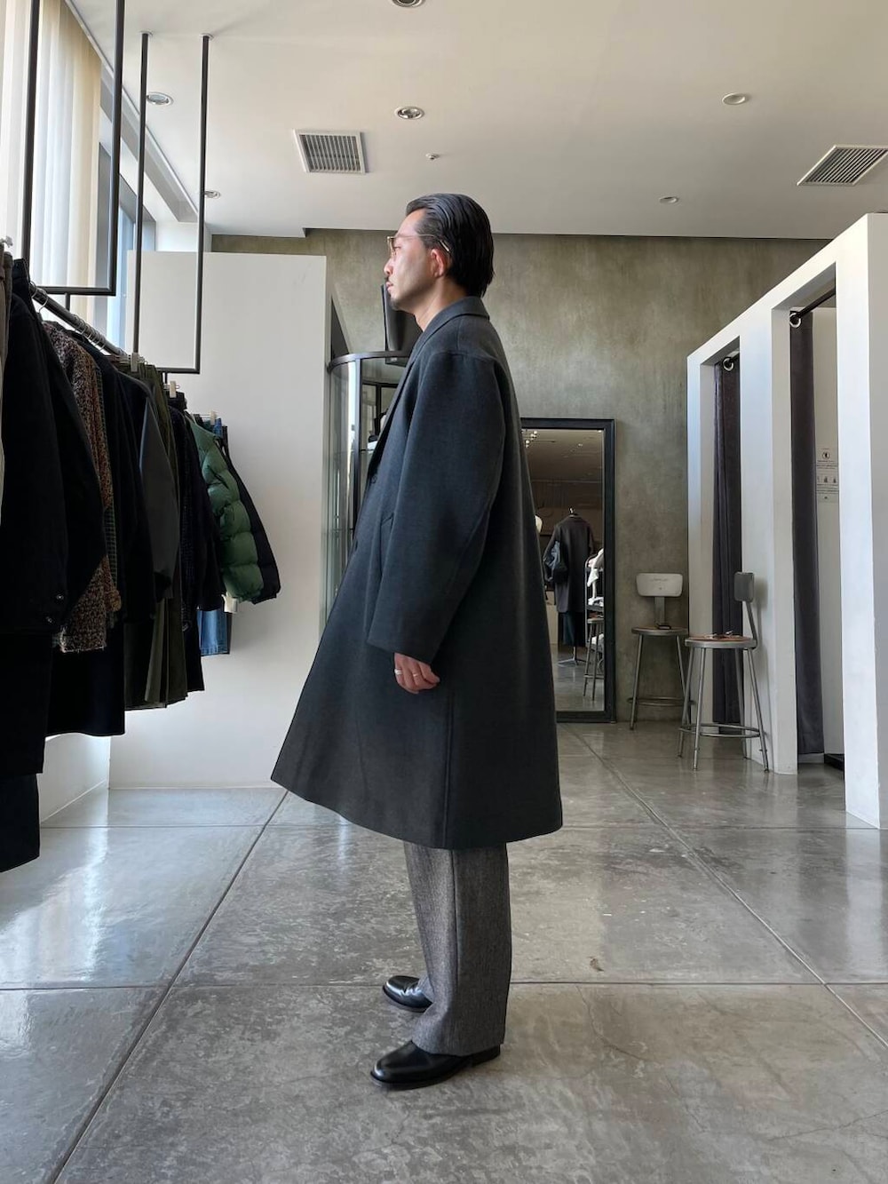昨年まではベーシックなサイズ感だったチェスターコートからアップデートされた新型のチェスターコート。