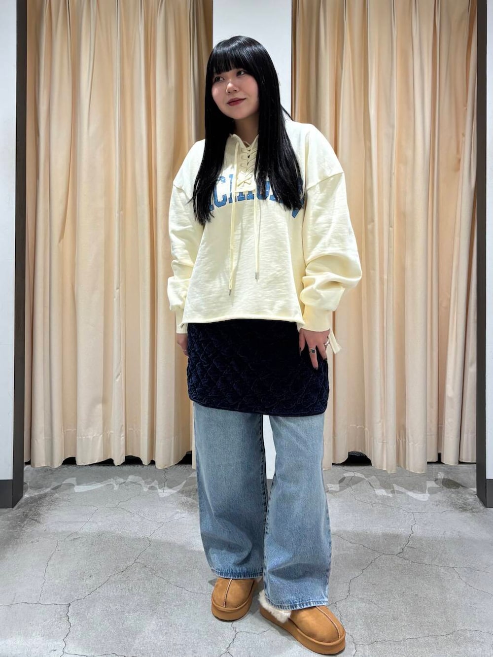 メンズライクなサイズ感なのでデニムやチノパンと合わせてカジュアルに着るのもよし、ベロアのロングスカートなどで甘辛MIXで着るのも可愛いです♥️