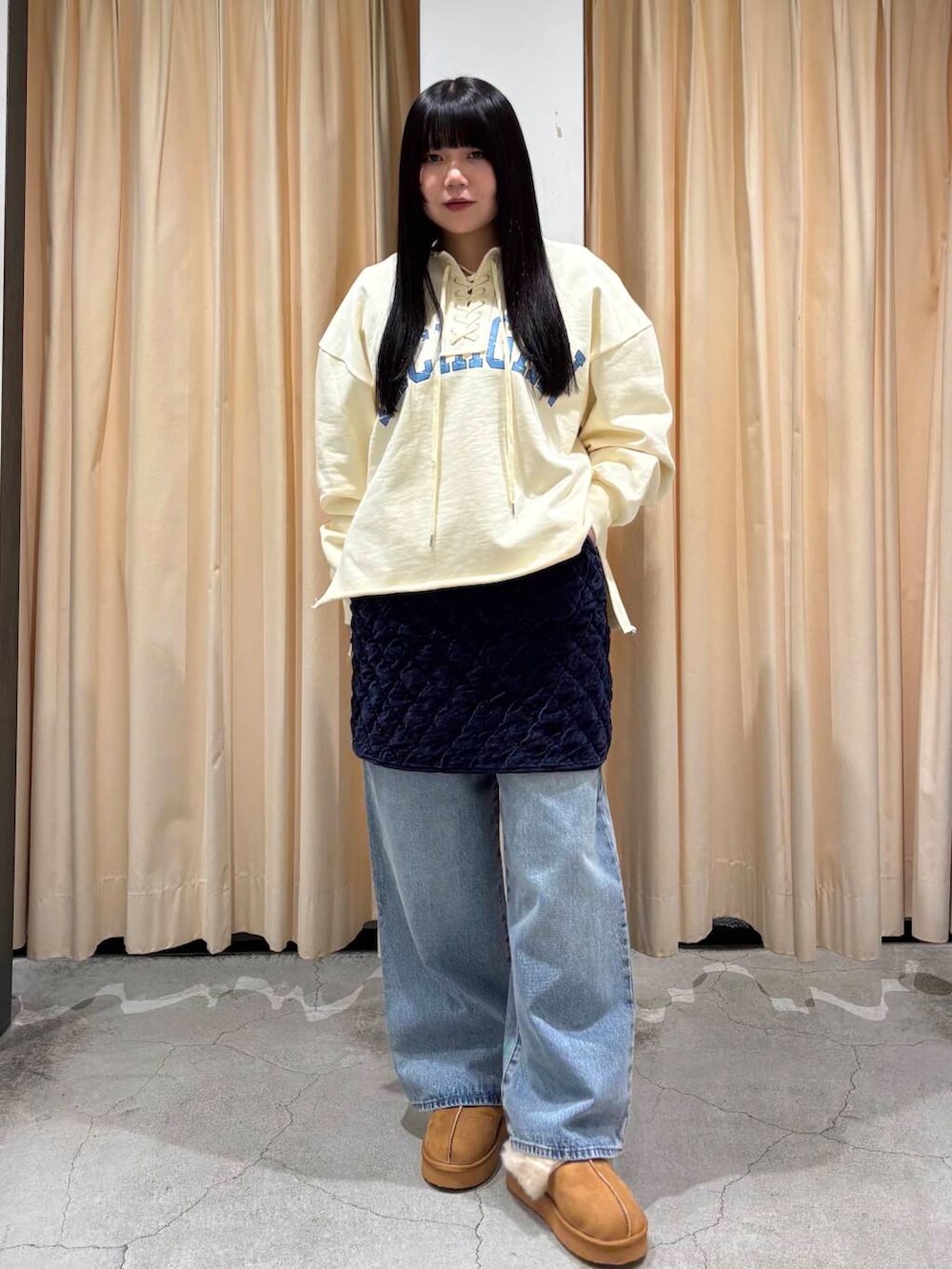 デニムなどのパンツにレイヤードしたり、流行りのグレーのタイツ×ロングブーツで合わせたりするのがオススメです!