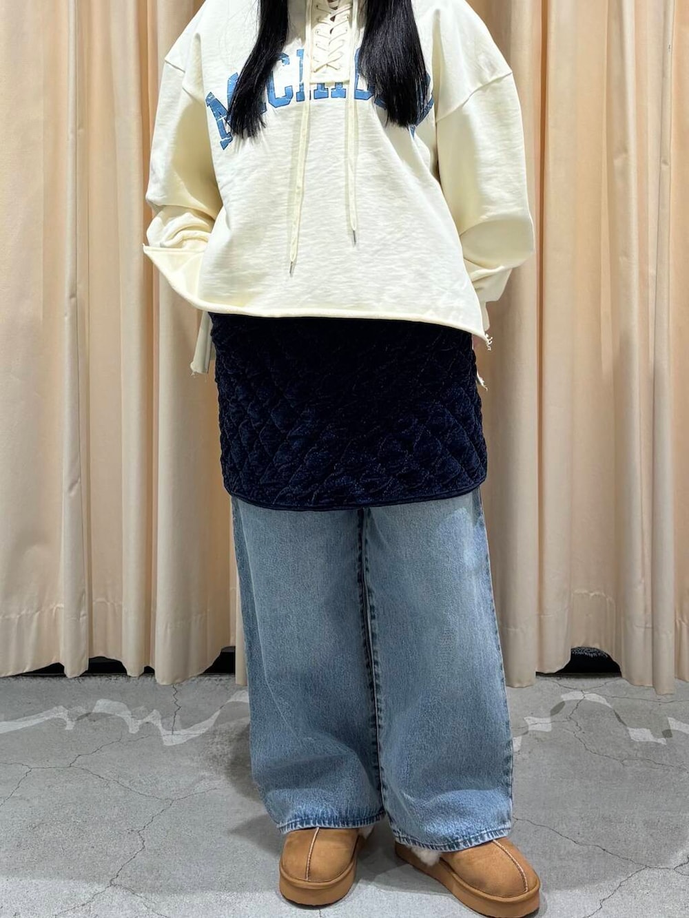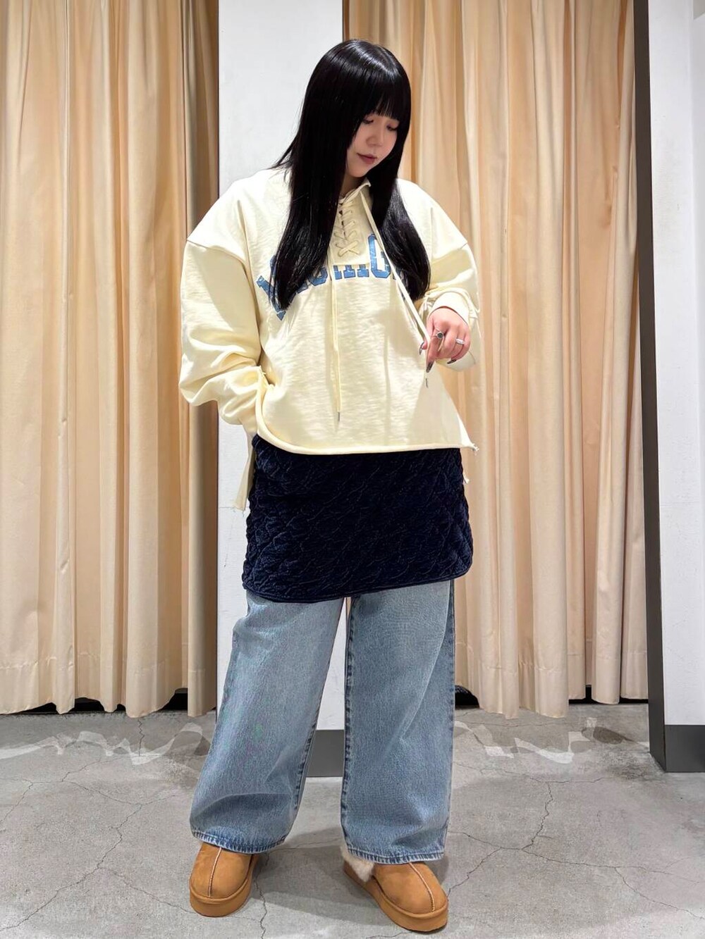 今回は、カジュアルなレイヤードコーデを組んでみました!秋冬っぽい素材のスカートをレイヤードでオシャレ度アップです✌🏻